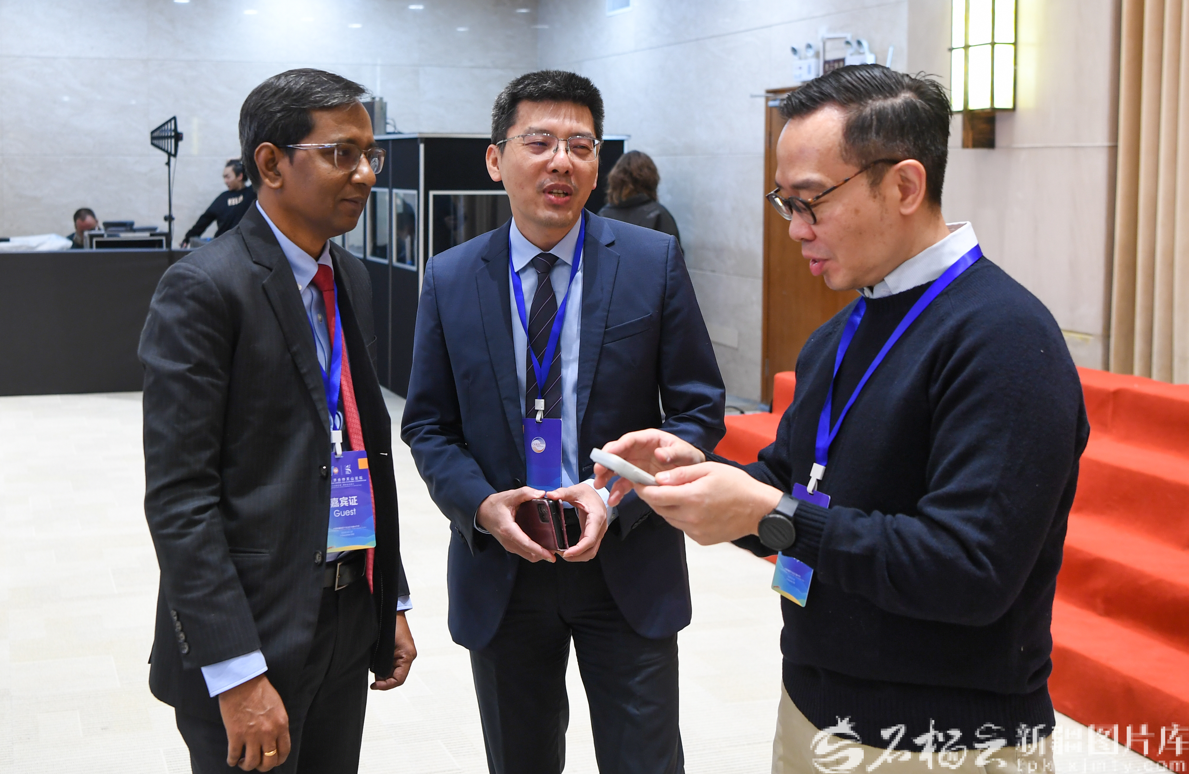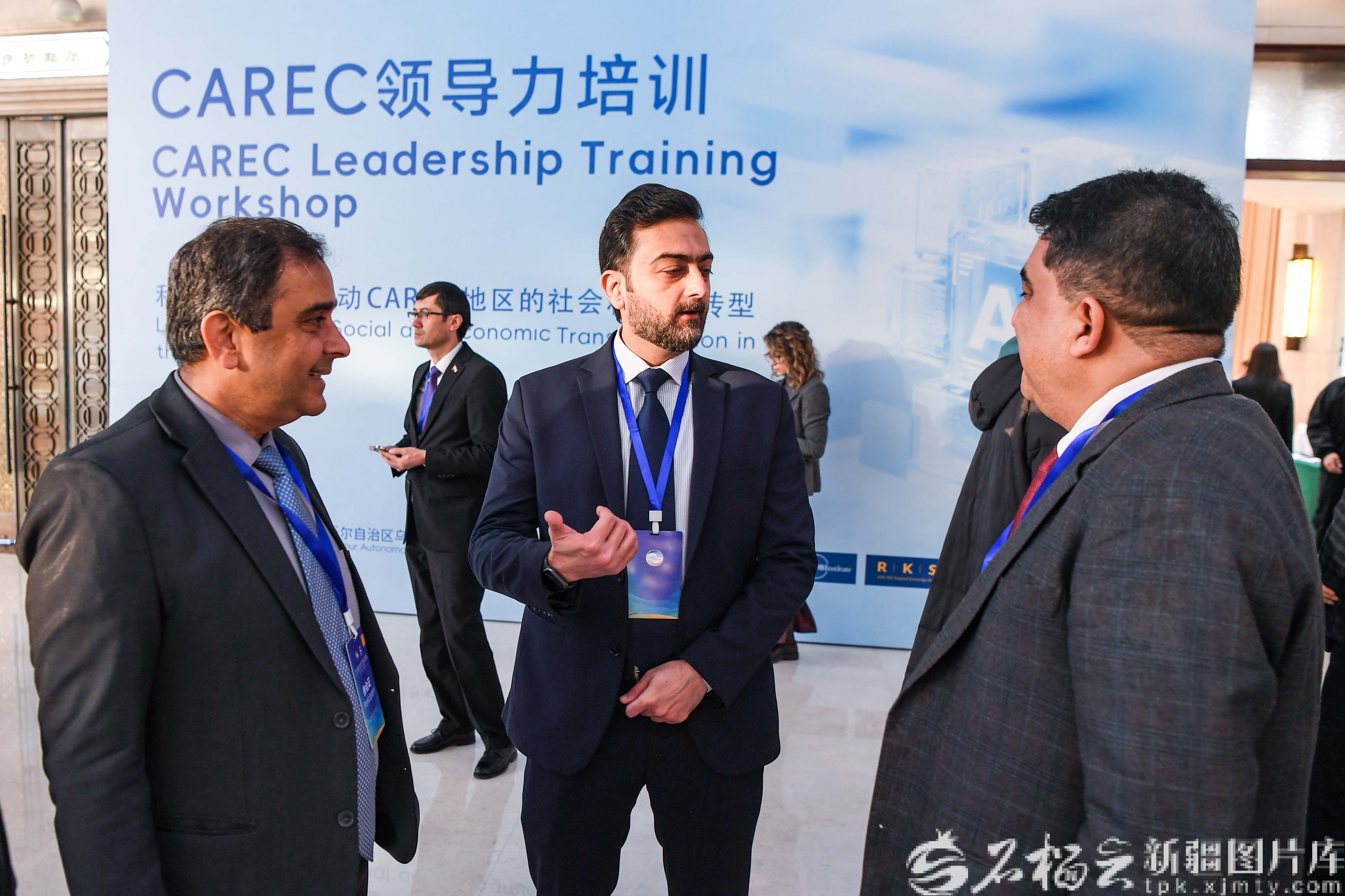 12月4日,中亞區(qū)域經(jīng)濟(jì)合作領(lǐng)導(dǎo)力培訓(xùn)在烏魯木齊舉行,會議間隙參會嘉賓相互交流。