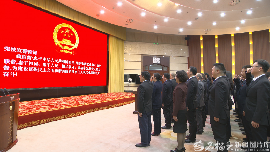 憲法宣誓儀式上,自治區(qū)人大常委會(huì)機(jī)關(guān)2023年以來(lái)任職干部集體進(jìn)行宣誓。天山網(wǎng)-新疆日?qǐng)?bào)記者 劉翔攝