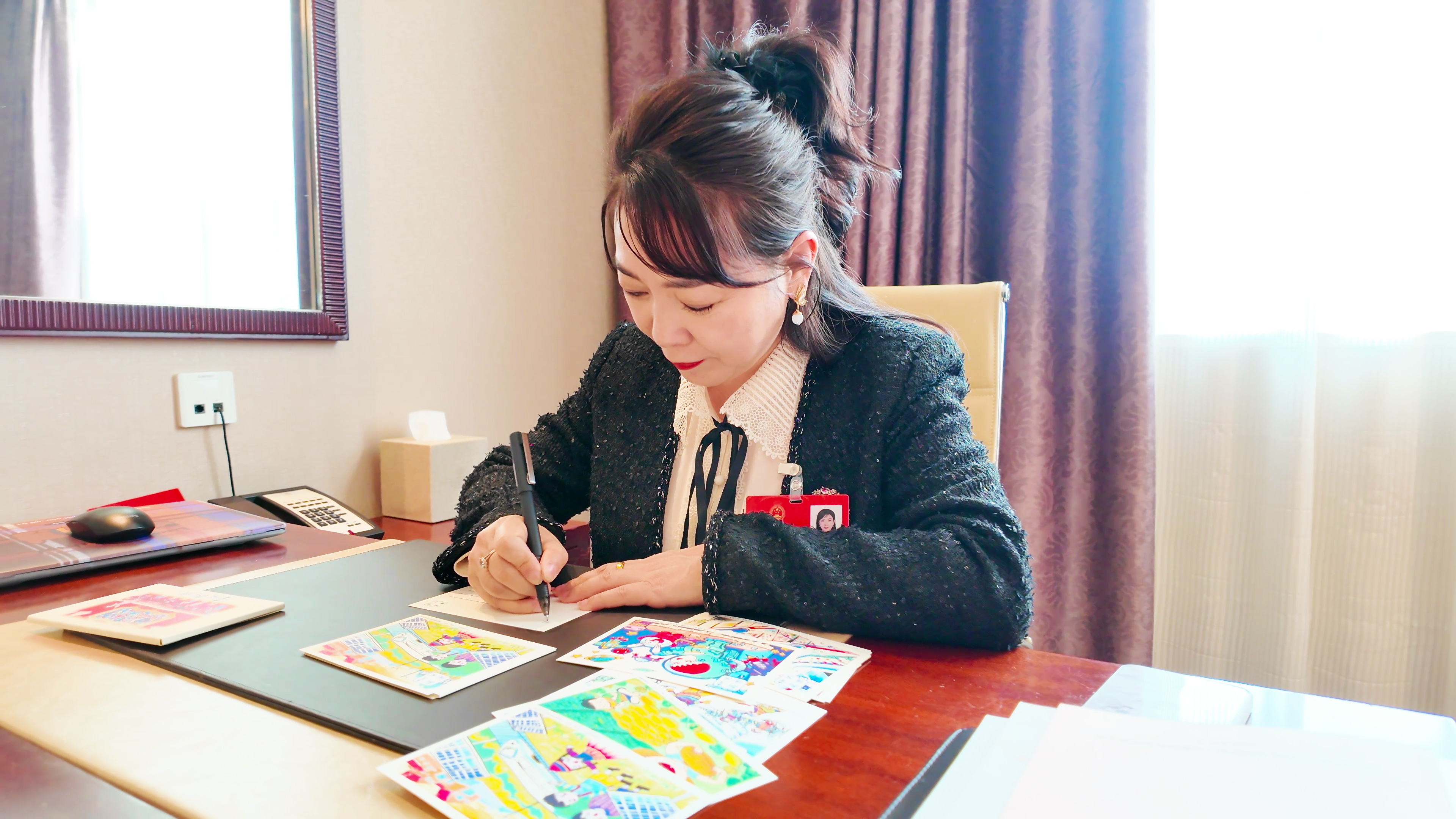 “小小畫筆繪山河,新疆未來看你們”“今日好好學(xué)習(xí),明日夢(mèng)想開花”……代表委員們寫下的寄語,既是對(duì)作品的贊許,也寄托著對(duì)青少年的期許,為孩子們注入溫暖與力量。