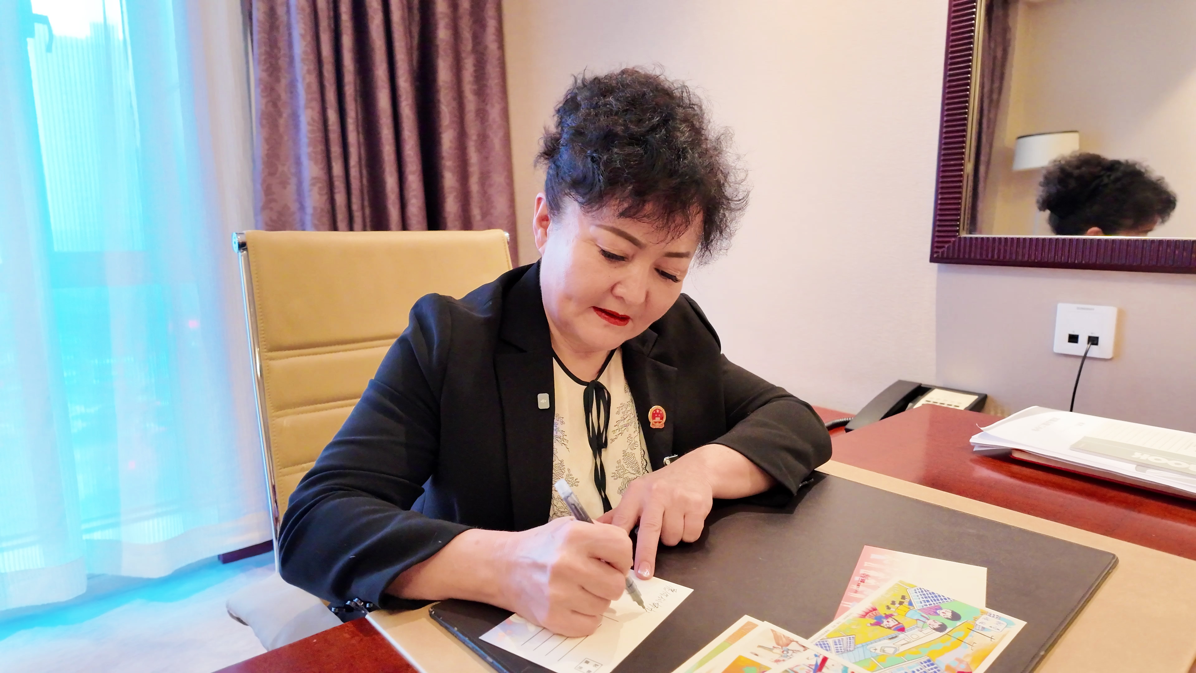2026年新疆兩會(huì)期間,“童繪新疆”明信片成為會(huì)場(chǎng)內(nèi)外一道暖心的風(fēng)景線,代表委員們紛紛提筆,與孩子們深情“對(duì)話”。