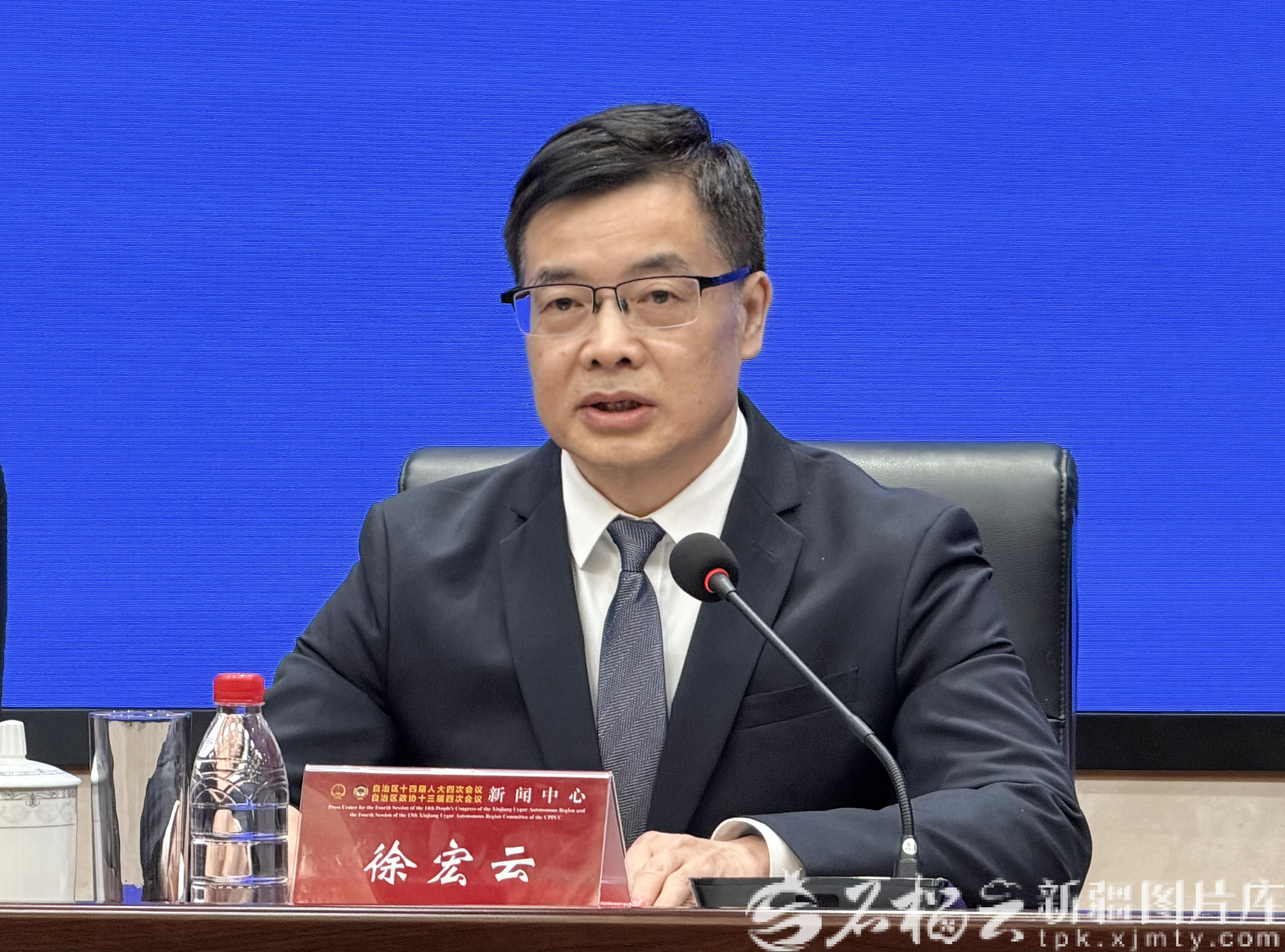 圖為自治區(qū)人民政府研究室黨組書(shū)記、主任徐宏云答記者問(wèn)。天山網(wǎng)-新疆日?qǐng)?bào)記者 李瑞攝