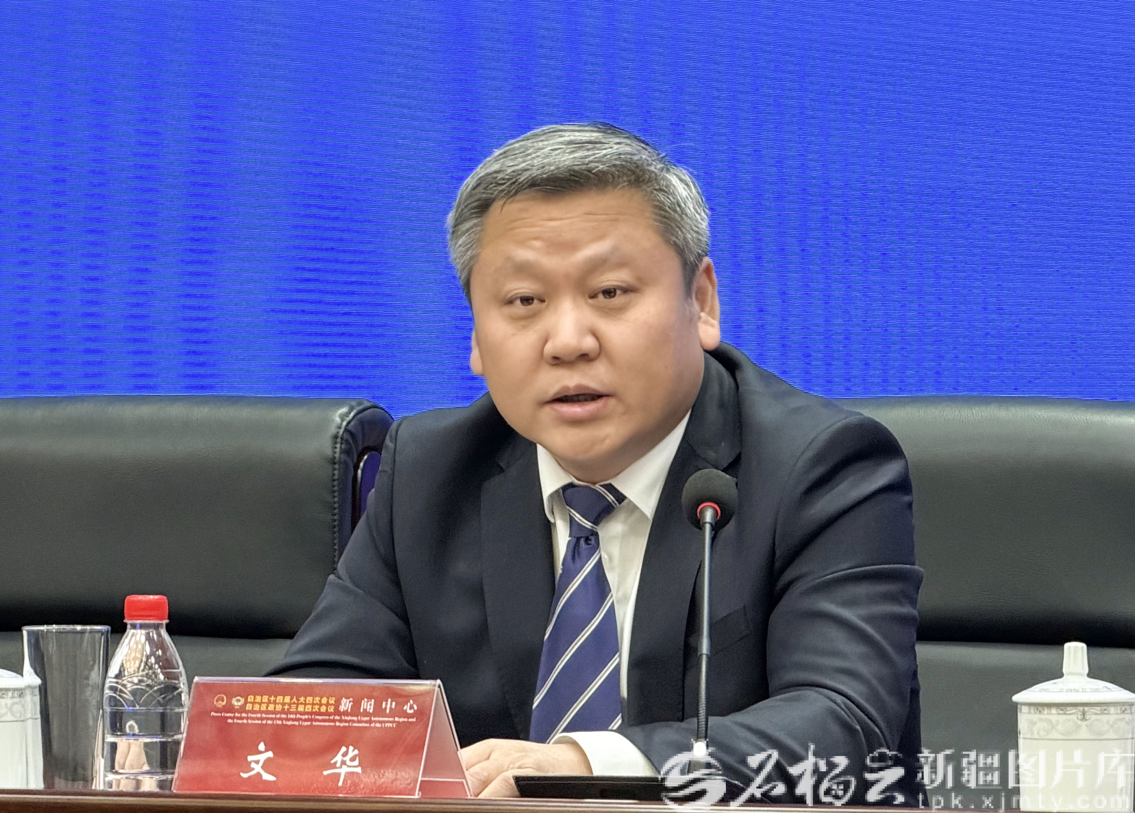 圖為自治區(qū)發(fā)展改革委黨組書(shū)記副主任文華答記者問(wèn)。天山網(wǎng)-新疆日?qǐng)?bào)記者 李瑞攝