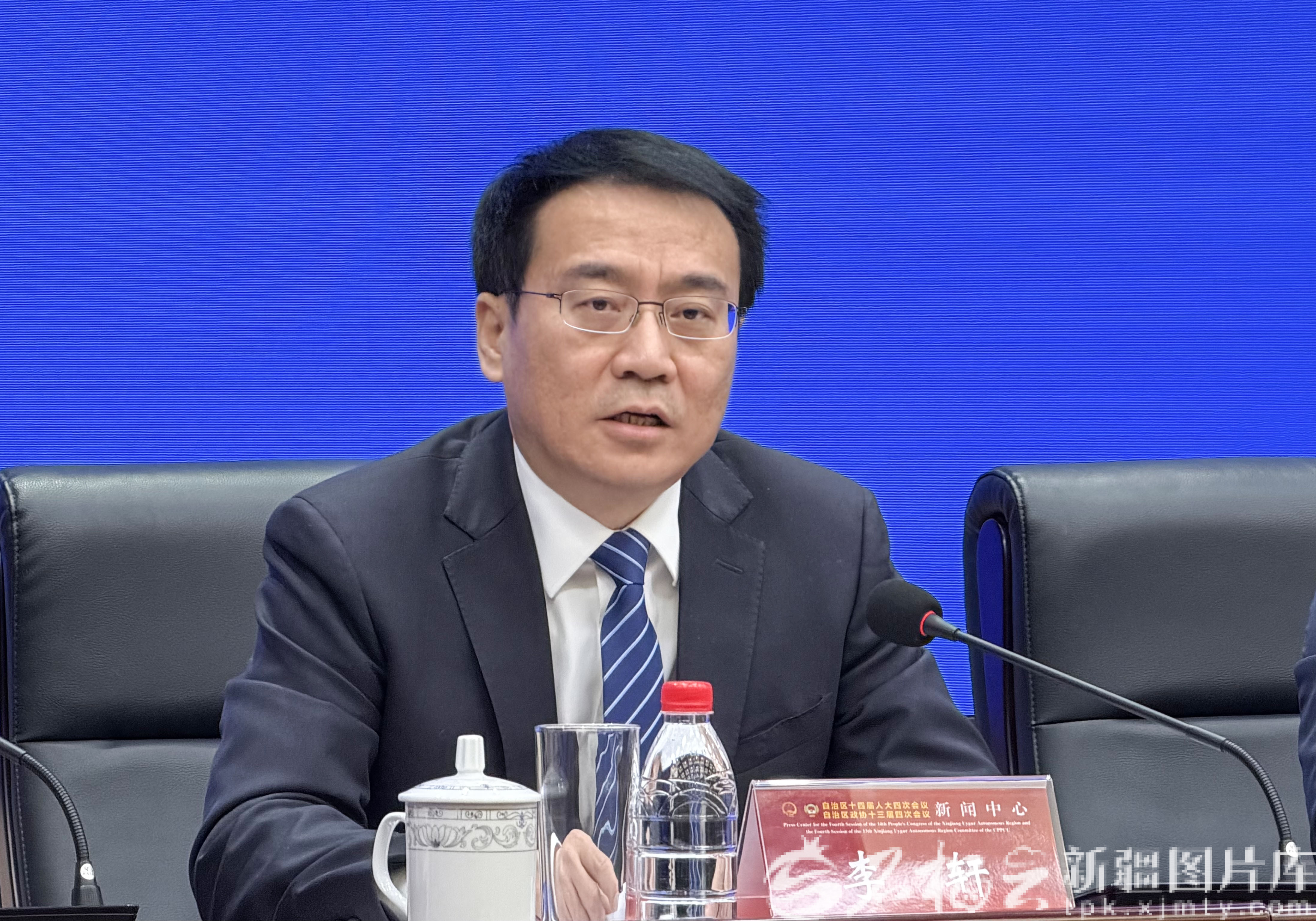 圖為自治區(qū)人民政府新聞發(fā)言人,自治區(qū)人民政府秘書(shū)長(zhǎng)王巋然作介紹。天山網(wǎng)-新疆日?qǐng)?bào)記者 李瑞攝