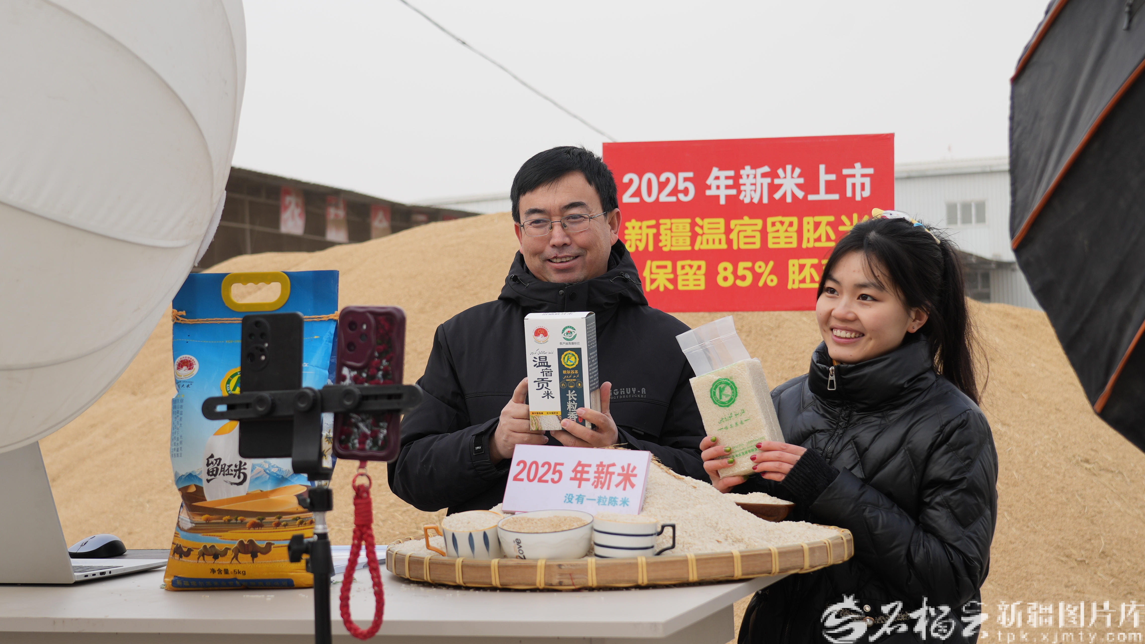 1月12日,鏡頭前,麥合木提·麥提熱依木化身“溫宿大米推薦官”,與主播一同講述稻香背后的故事。