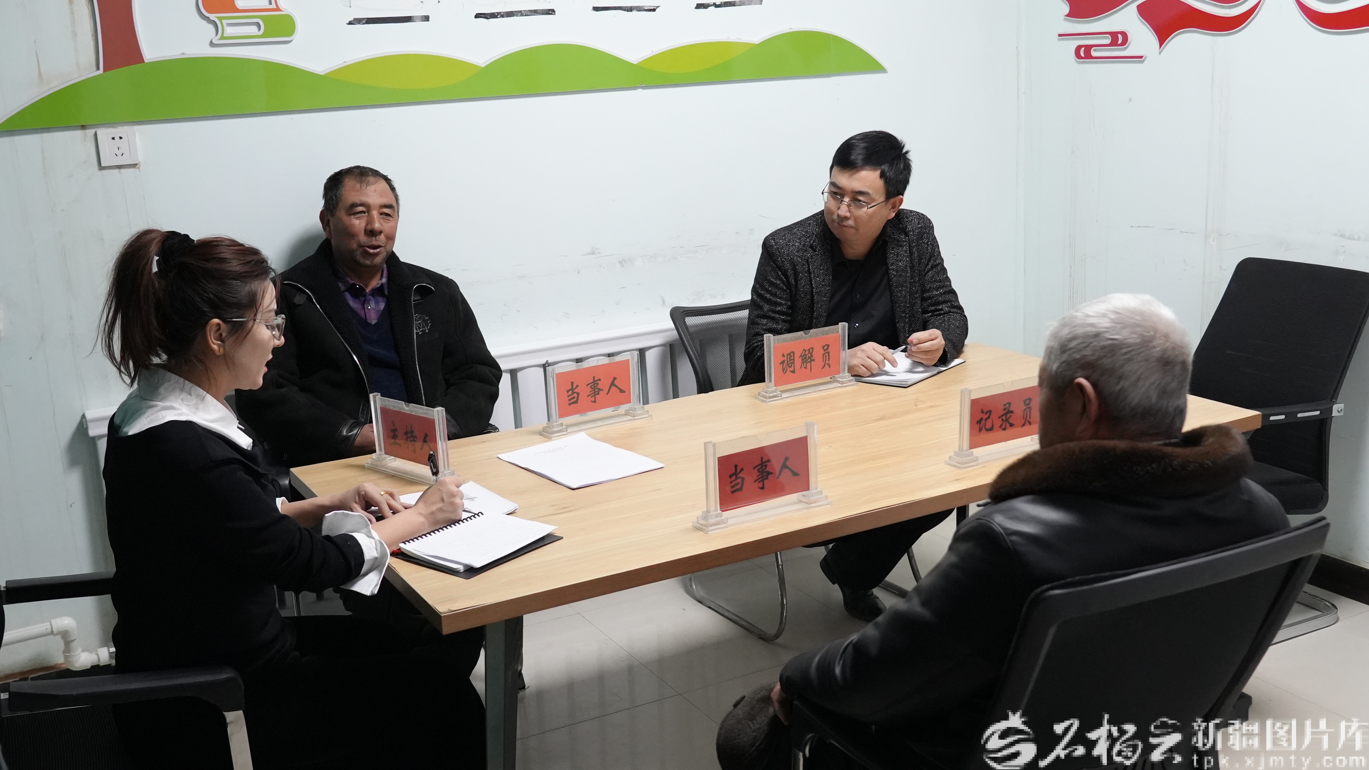 1月8日,溫宿縣托乎拉鄉(xiāng)矛盾調(diào)解室,麥合木提·麥提熱依木在傾聽雙方訴求,調(diào)解鄰里糾紛。