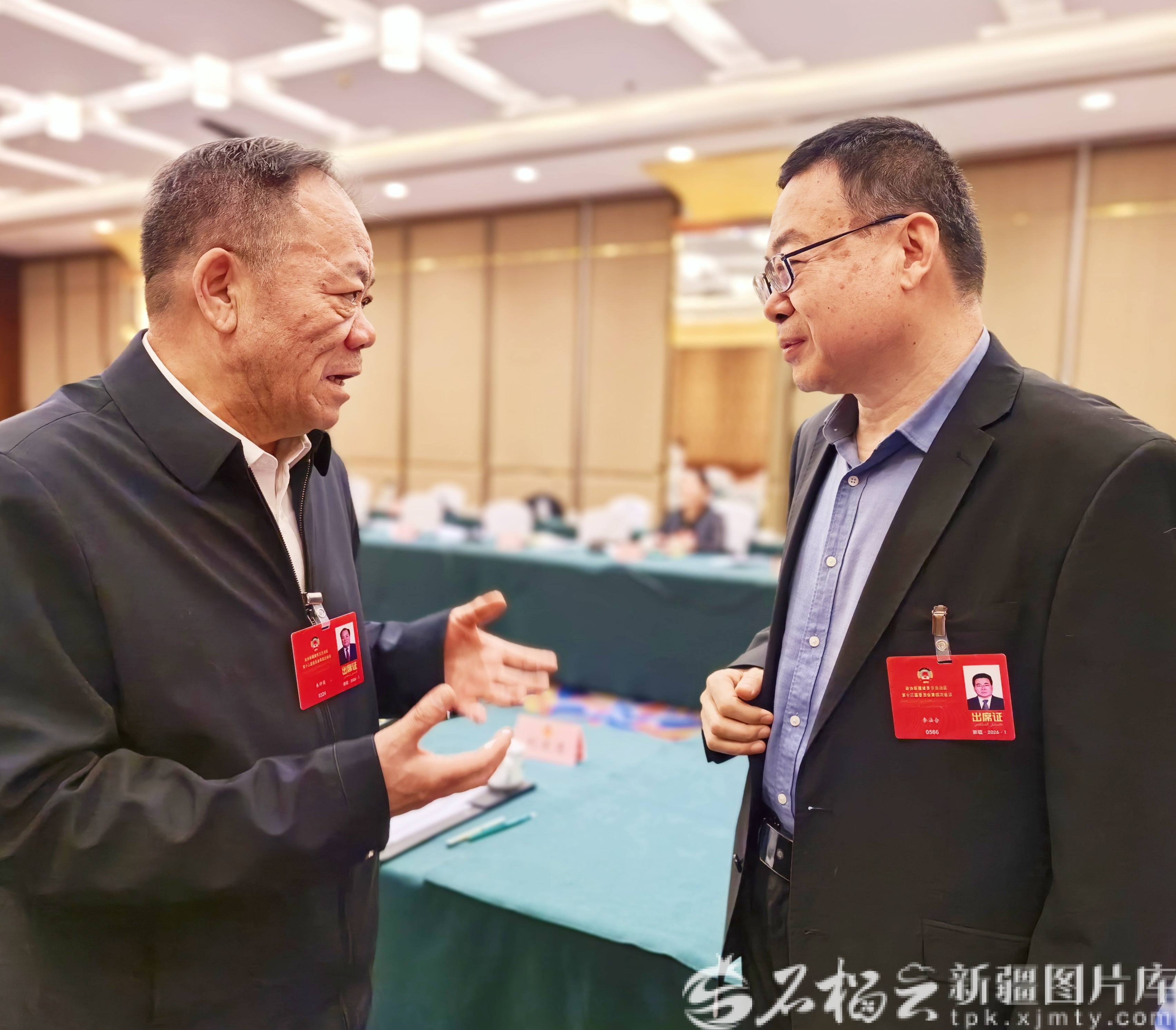 1月29日,農(nóng)業(yè)界、環(huán)境資源界委員分組討論政府工作報(bào)告、自治區(qū)“十五五”規(guī)劃綱要草案、兩院工作報(bào)告等。委員們?cè)跁?huì)議間隙一起交流。天山網(wǎng)—新疆日?qǐng)?bào)記者 約提克爾·尼加提攝