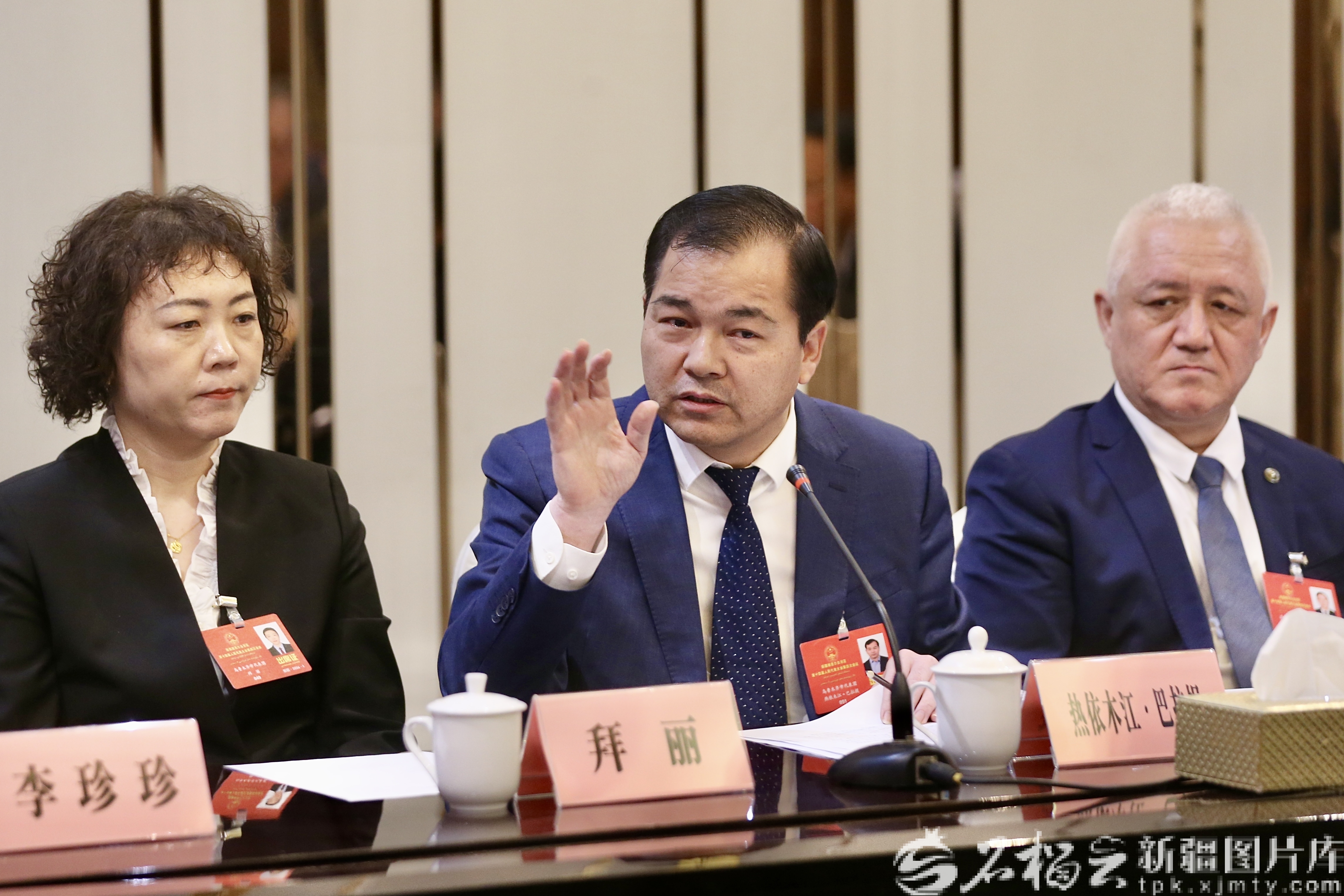 1月30日,熱依木江·巴拉提代表(中)在參加烏魯木齊代表團(tuán)審議時(shí),就食品安全內(nèi)容發(fā)言。天山網(wǎng)-新疆日?qǐng)?bào)記者 李瑞攝