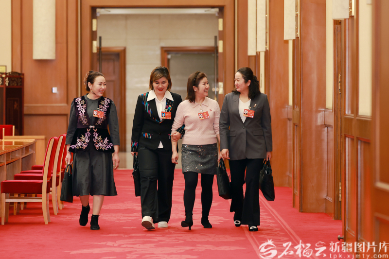 3月8日,十四屆全國人大四次會議新疆代表團舉行小組會議。當日是“三八”國際勞動婦女節(jié),新疆代表團幾位代表意氣風發(fā)地前往會場。記者 崔志堅攝