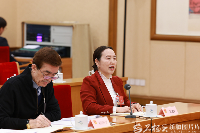 3月8日,十四屆全國人大四次會議新疆代表團舉行小組會議,分別審議生態(tài)環(huán)境法典草案、民族團結(jié)進步促進法草案、國家發(fā)展規(guī)劃法草案。圖為吳文秀代表(右)圍繞建設(shè)美麗鄉(xiāng)村等內(nèi)容發(fā)言。記者 崔志堅攝