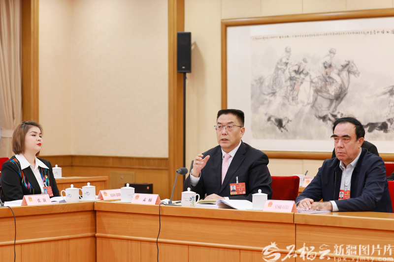 3月8日,十四屆全國人大四次會議新疆代表團舉行小組會議,分別審議生態(tài)環(huán)境法典草案、民族團結(jié)進步促進法草案、國家發(fā)展規(guī)劃法草案。圖為劉洪濤代表(前中)圍繞推進發(fā)展規(guī)劃法治化等內(nèi)容發(fā)言。記者 崔志堅攝