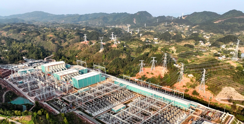 位于重慶市渝北區(qū)大灣鎮(zhèn)的渝北換流站(2025年4月2日無(wú)人機(jī)攝)?!跻曈X(jué)重慶記者張錦輝攝