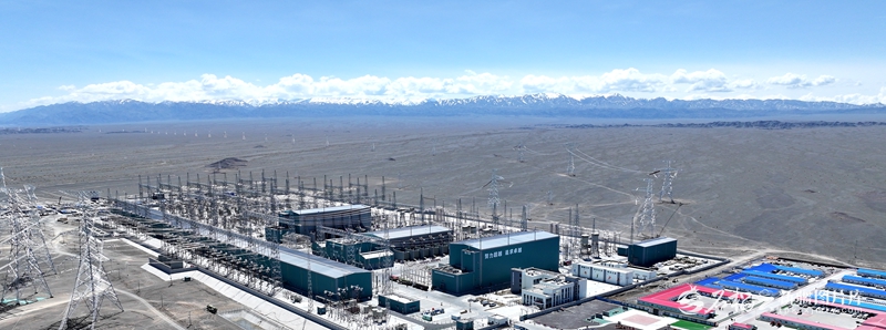 俯瞰哈密—重慶±800千伏特高壓直流輸電工程巴里坤換流站(3月7日無(wú)人機(jī)攝)。□郭子毅攝