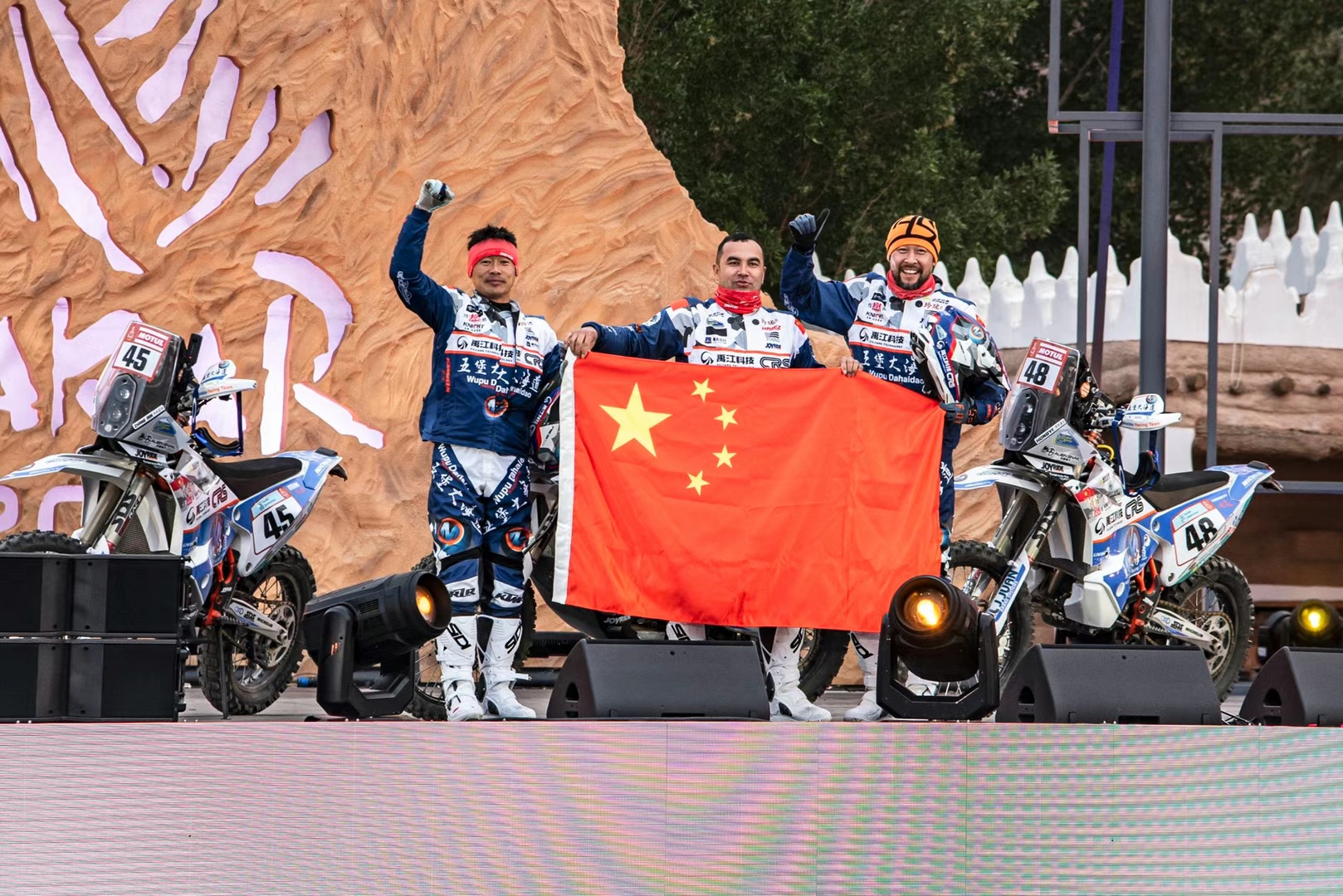五星紅旗飄揚(yáng)在達(dá)喀爾拉力賽賽場。扎克爾供