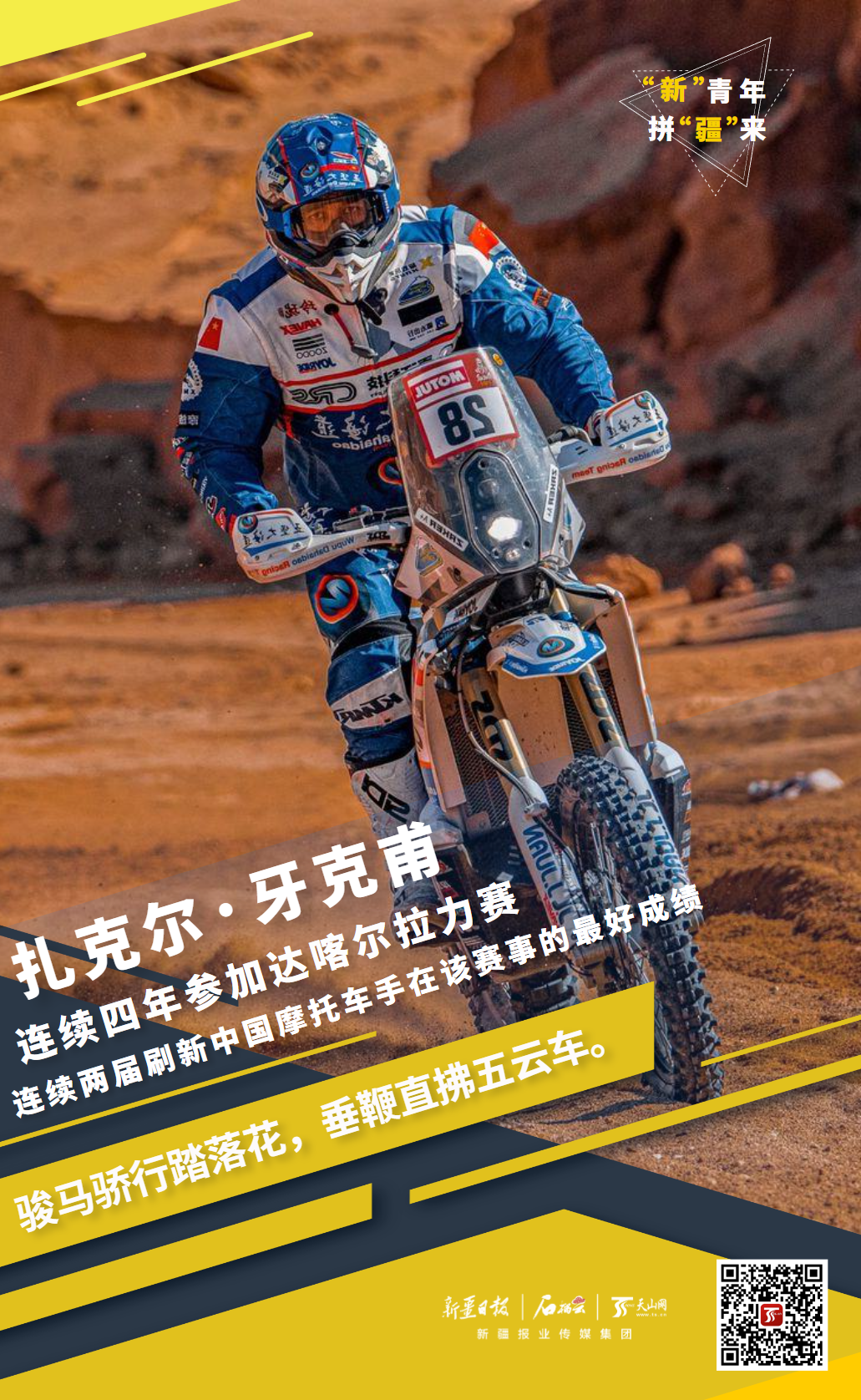 代表五堡大海道車隊(duì)參賽的新疆摩托車手扎克爾·牙克甫順利完賽