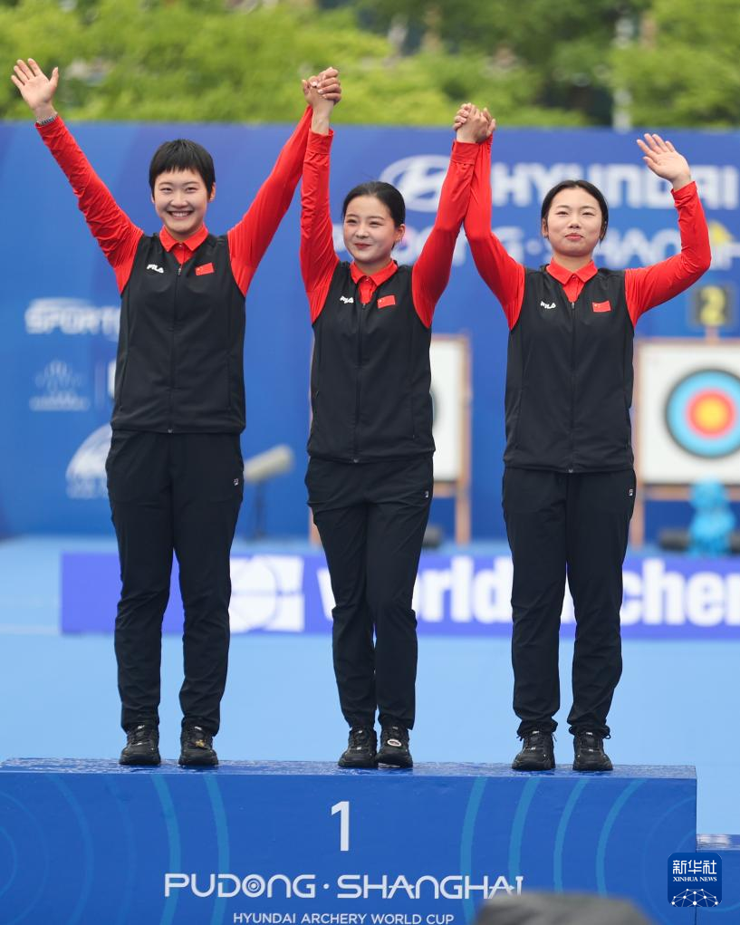 中國女子射箭隊在2024射箭世界杯賽上海站的女子反曲弓團體決賽中