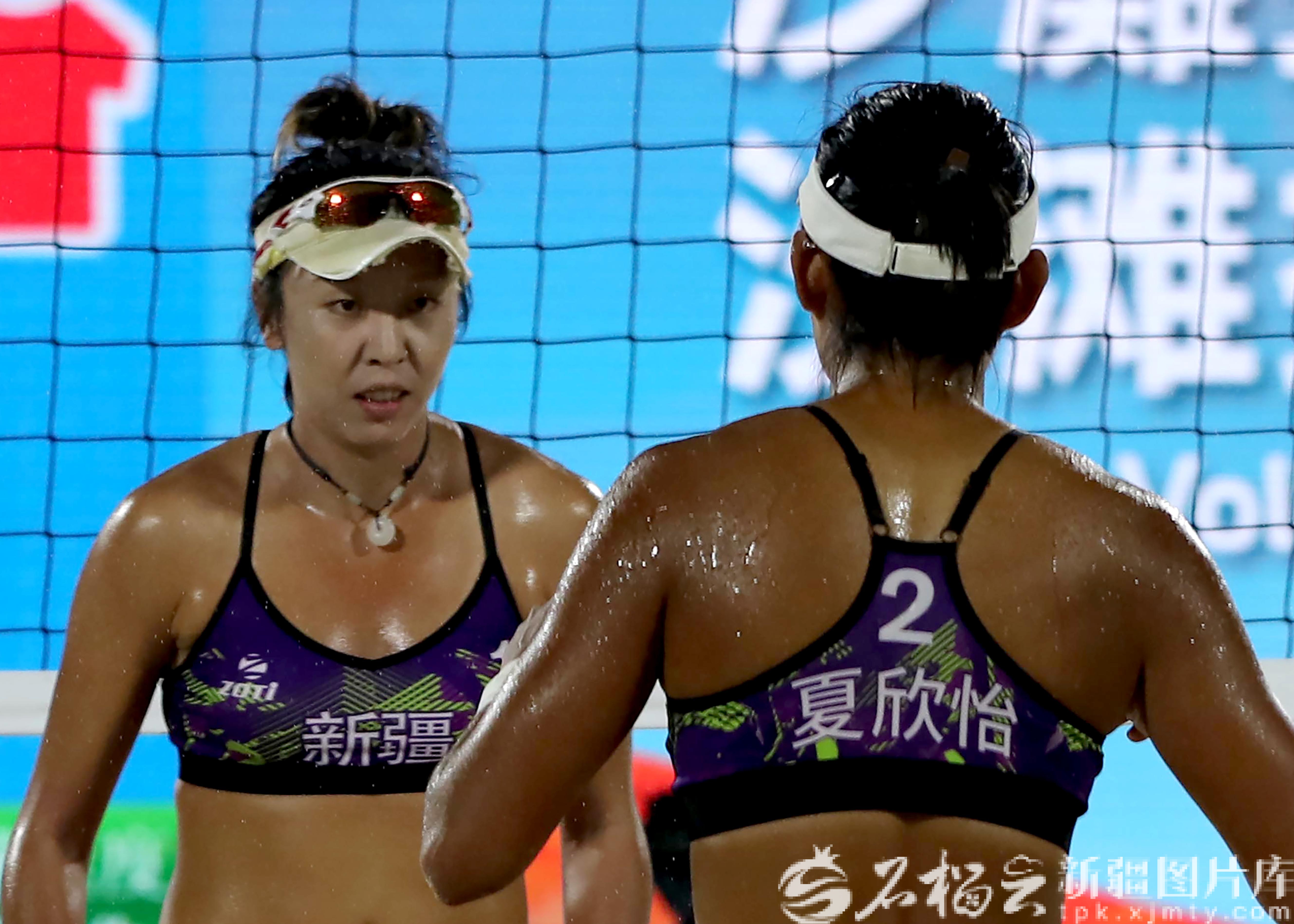 賽場(chǎng)上王婧哲(左)與夏欣怡汗流浹背。天山網(wǎng)-新疆日?qǐng)?bào)記者 蔡增樂攝
