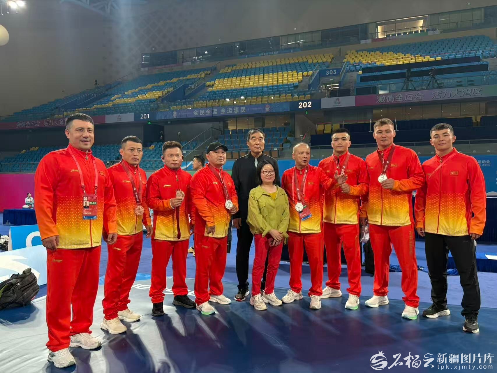 第十五屆全國(guó)運(yùn)動(dòng)會(huì)上,新疆摔跤隊(duì)隊(duì)員們獲得多枚獎(jiǎng)牌。天山網(wǎng)-新疆日?qǐng)?bào) 記者王晶晶攝