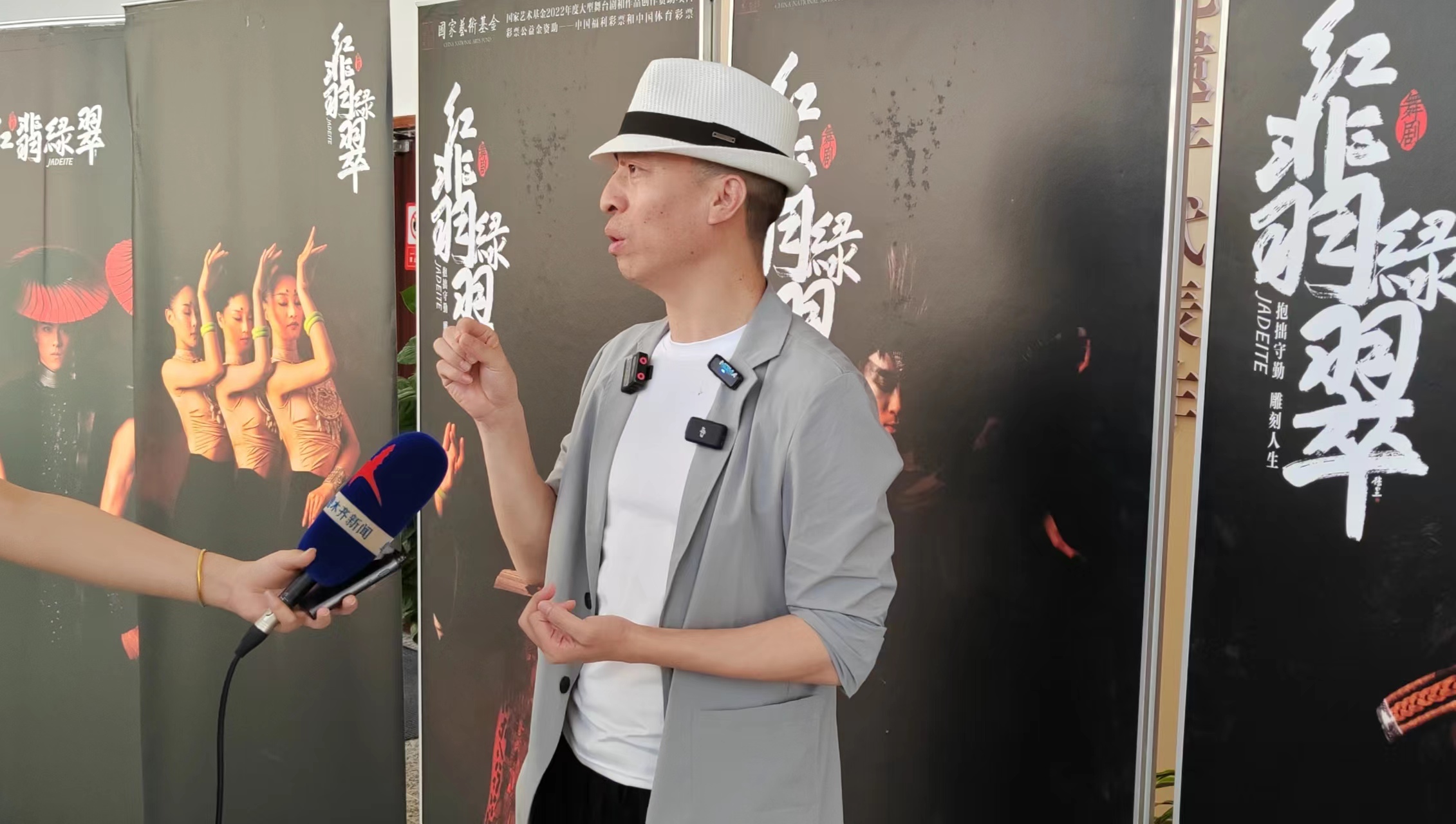 《紅翡綠翠》總編導(dǎo)念云華接受媒體采訪。中國煤礦文工團供圖