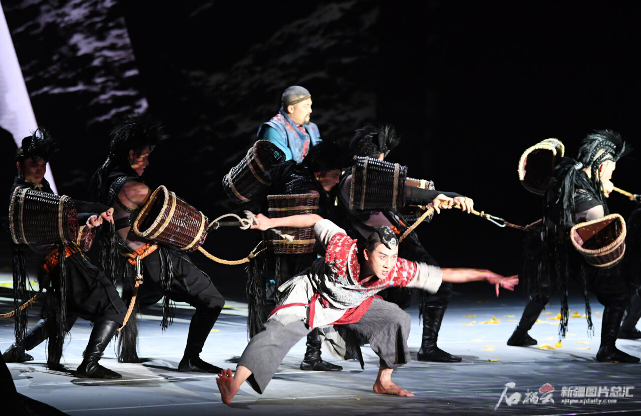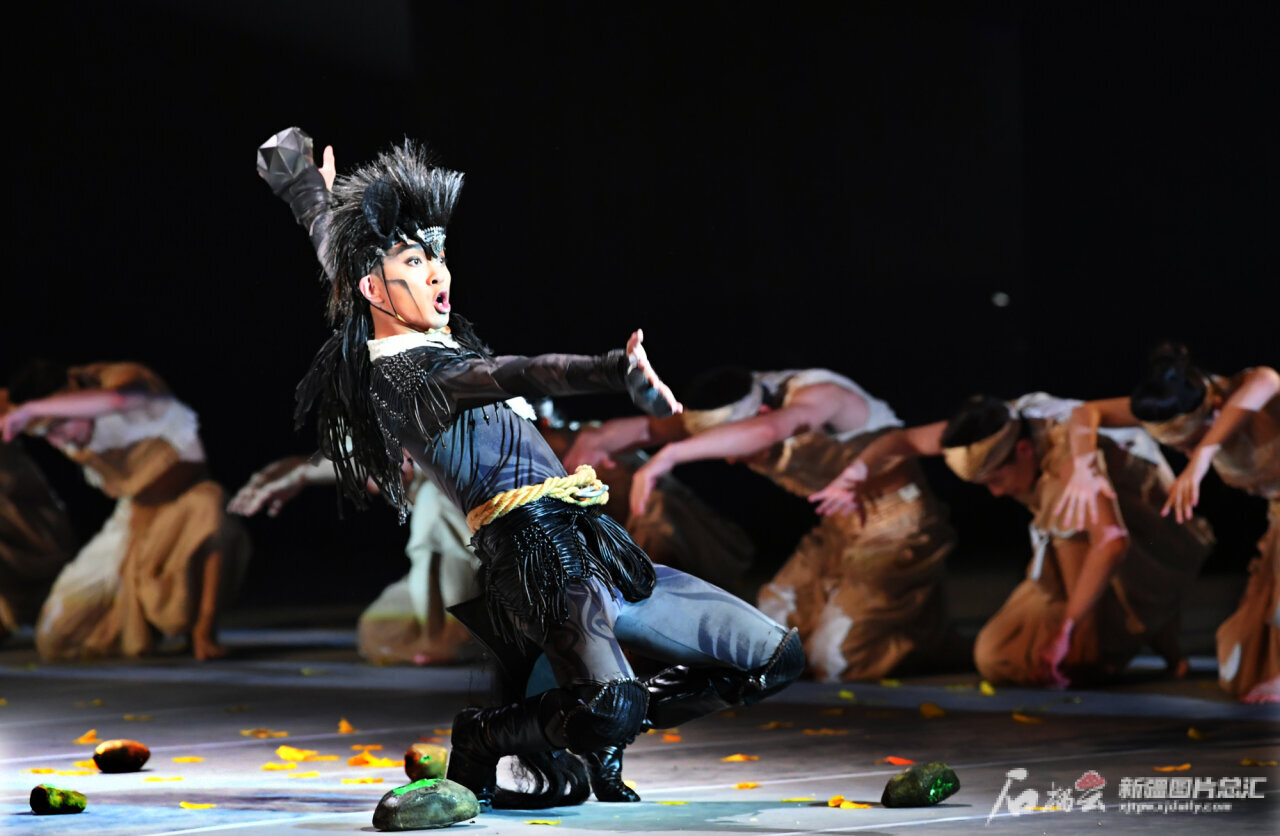 天山網(wǎng)-新疆日報訊(記者約提克爾·尼加提攝影報道)7月22日,演員在表演舞劇《紅翡綠翠》。
