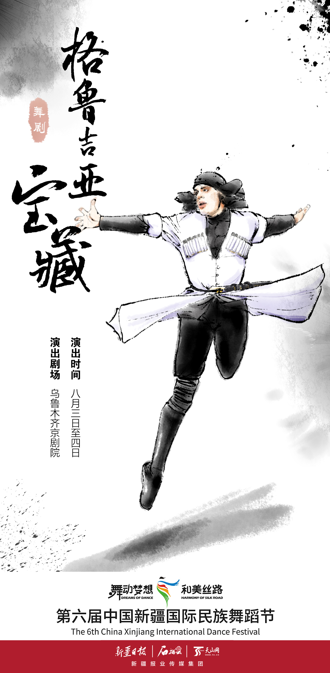 第六屆中國新疆國際民族舞蹈節(jié)手繪海報(bào) | 舞劇《格魯吉亞寶藏》