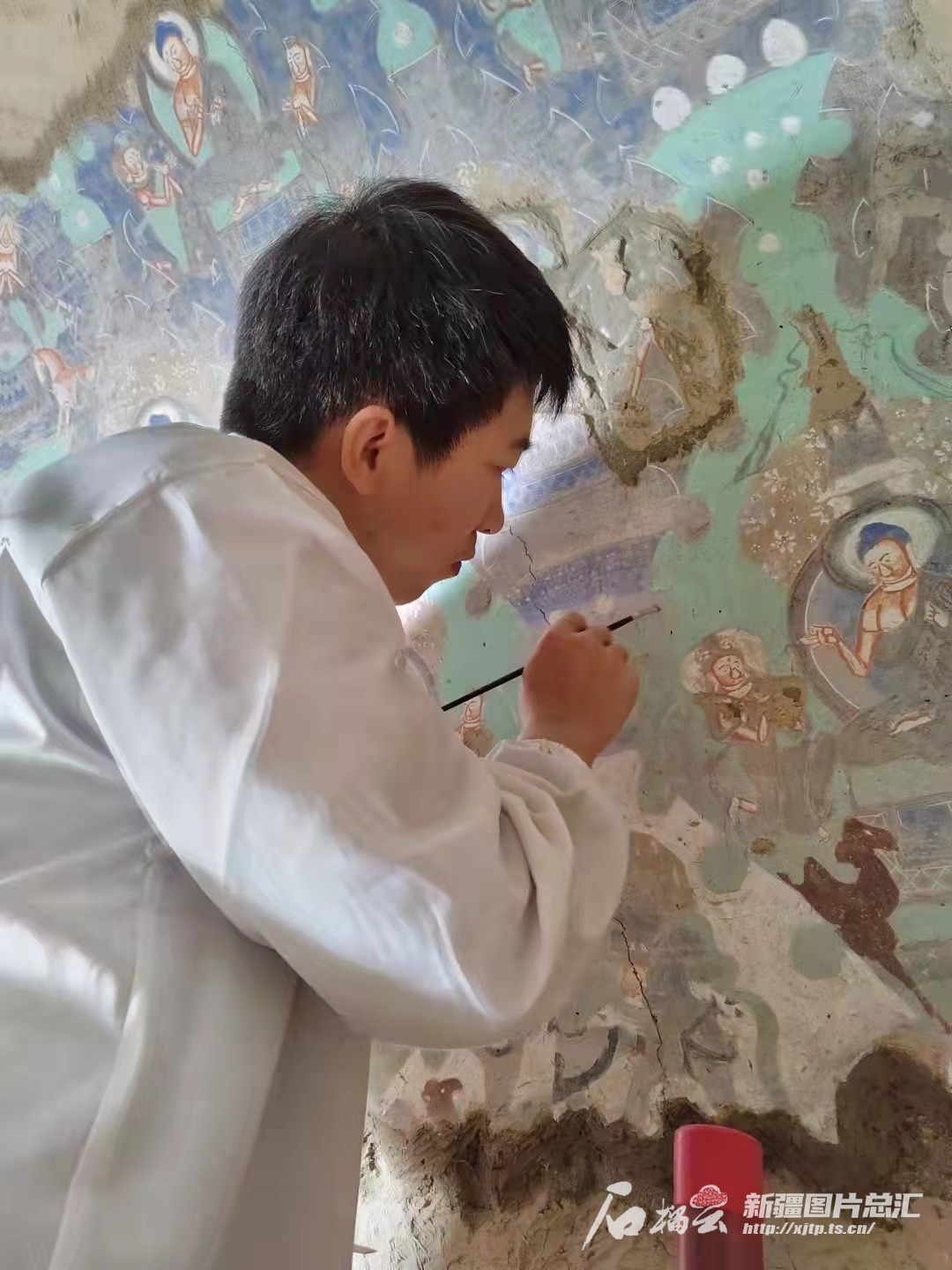 2010年從西北大學(xué)文物保護(hù)專業(yè)畢業(yè)后,周智波來(lái)到新疆克孜爾石窟研究所工作。十幾年里,他參與保護(hù)的洞窟有30多個(gè),修復(fù)壁畫130多塊、100多平方米,讓歷盡滄桑的壁畫重放光彩和神韻。
