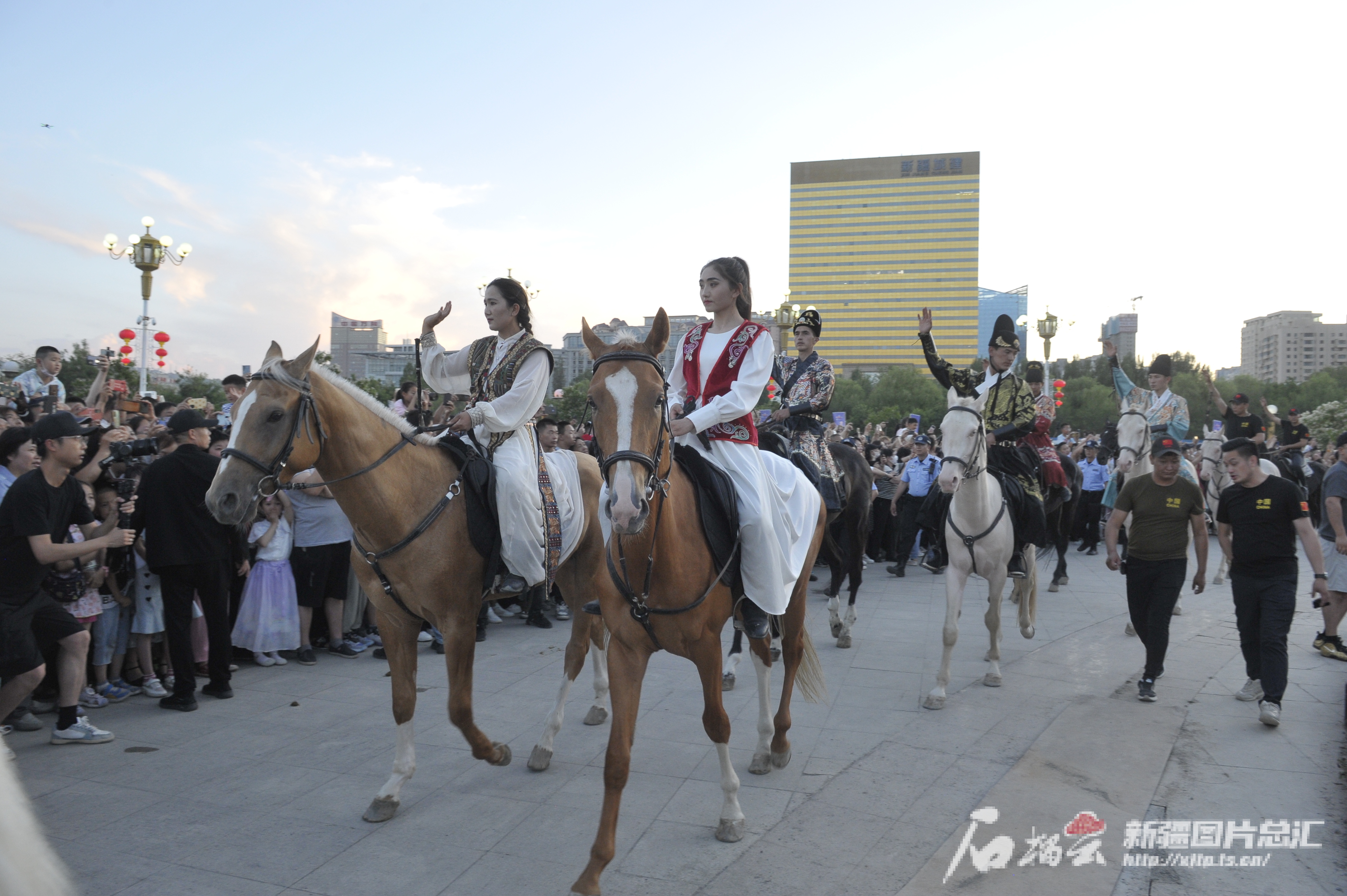 6月9日晚,“粽香中國·烏魯木齊 馬上旅游篝火之夜”在烏魯木齊南湖市民廣場舉行?;顒蝇F(xiàn)場,市民和游客觀賞汗血寶馬巡游、圍著篝火載歌載舞。