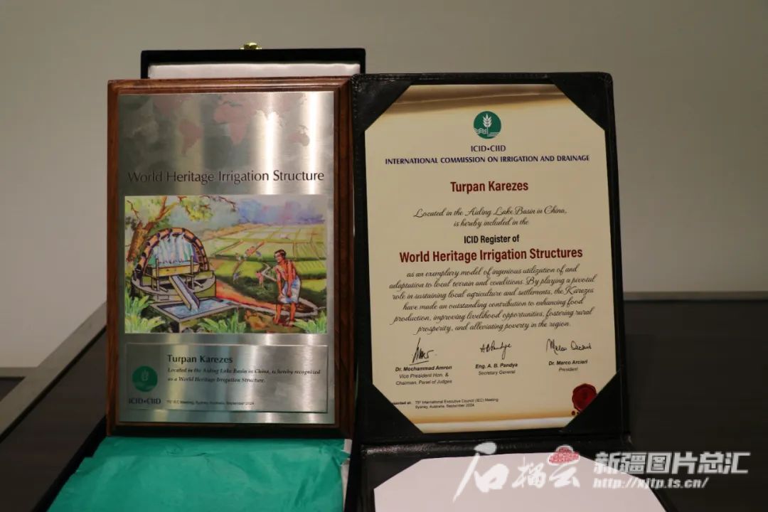9月3日,國際灌排委員會向吐魯番坎兒井頒發(fā)的世界灌溉工程遺產(chǎn)證書。趙鵬博 攝
