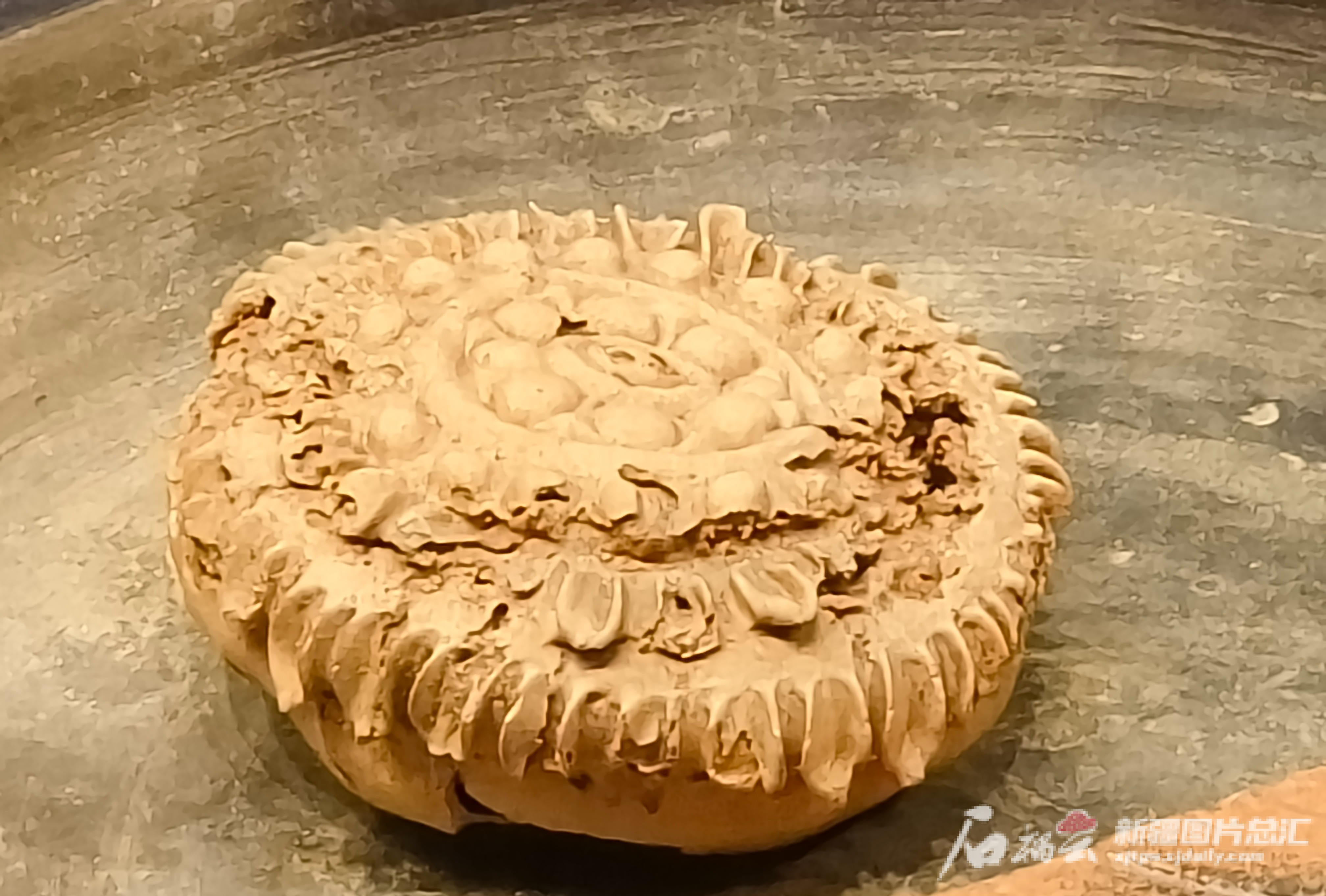 目前國內(nèi)出土的唯一一件月餅式糕點實物文物,來自唐代,距今有1400多年,1972年出土于吐魯番阿斯塔那230號墓。