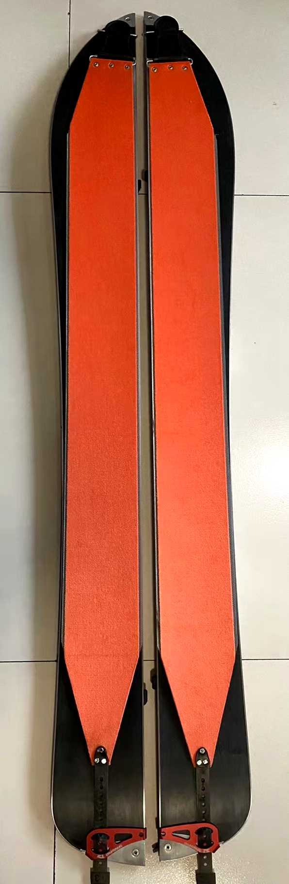 裝備方面,由于要進行長距離越野及背板攀登,因此滑雪登山的雪板比常規(guī)雪板長度更短、更細,重量更輕。長度約在150—160厘米,重量約700—750克。雪杖同樣較普通雪杖更短更輕。