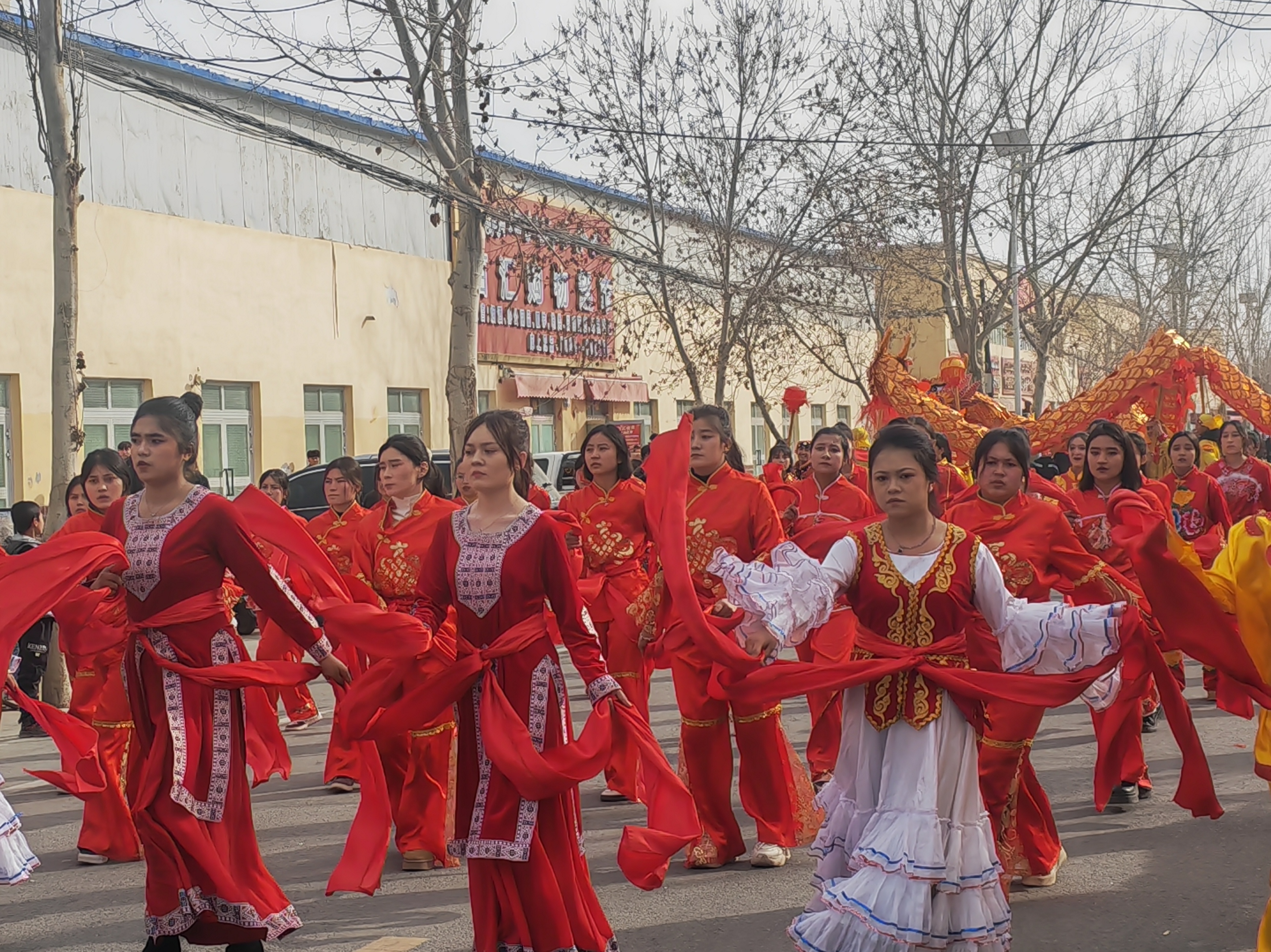 下午時分,隨著一陣陣喜慶的鑼鼓聲響起,社火活動正式拉開帷幕。舞龍舞獅、秧歌等節(jié)目等社火節(jié)目精彩紛呈。身著節(jié)日盛裝的演員們,以飽滿的熱情和精湛的技藝,踏著激昂的鼓點,昂首闊步,每一個動作都飽含著對新年的期待和對美好生活的向往。其中,“瑞蛇”表演尤為引人注目,巨龍翻騰、銀蛇蜿蜒,寓意著新的一年里風(fēng)調(diào)雨順、國泰民安。