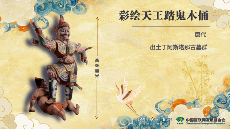 彩繪天王踏鬼木俑。天山網(wǎng)-新疆日?qǐng)?bào)記者 王新紅攝