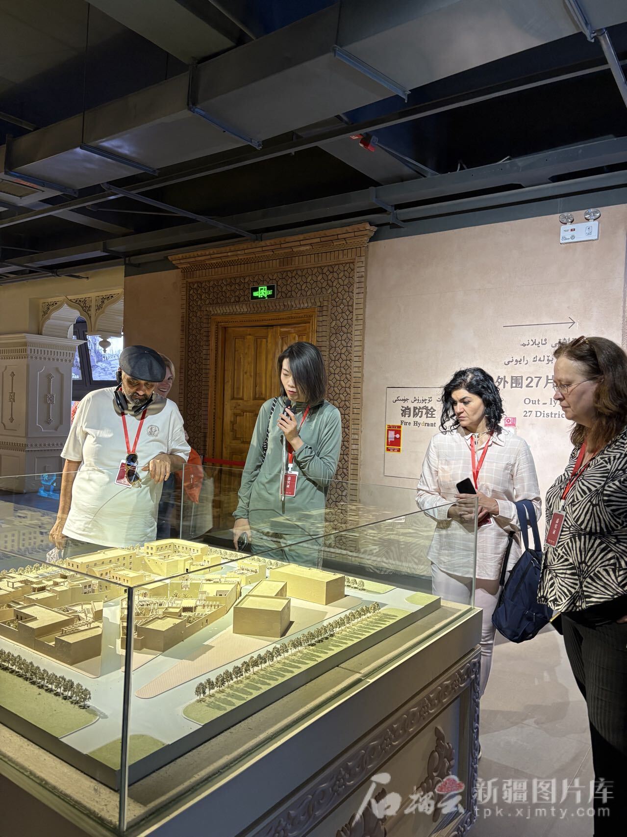 漢學(xué)家們參觀喀什市老城區(qū)保護(hù)綜合治理紀(jì)念館。天山網(wǎng)-新疆日?qǐng)?bào)記者 瑪依古麗·艾依提哈孜攝