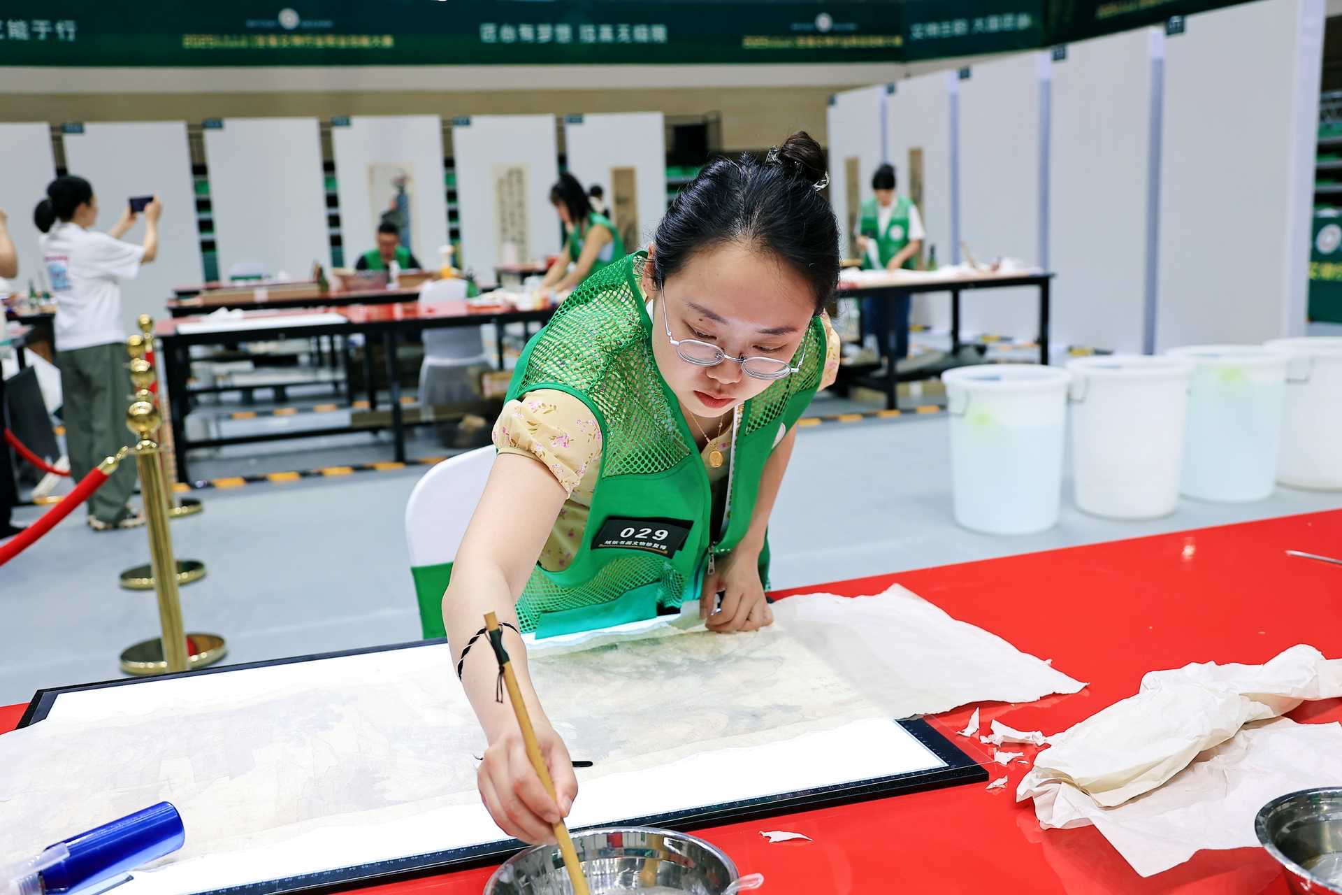 自治區(qū)博物館鄒英杰在比賽中榮獲紙張書畫文物修復(fù)師項(xiàng)目三等獎(jiǎng),圖為她在參賽現(xiàn)場的留影。鄒英杰供圖
