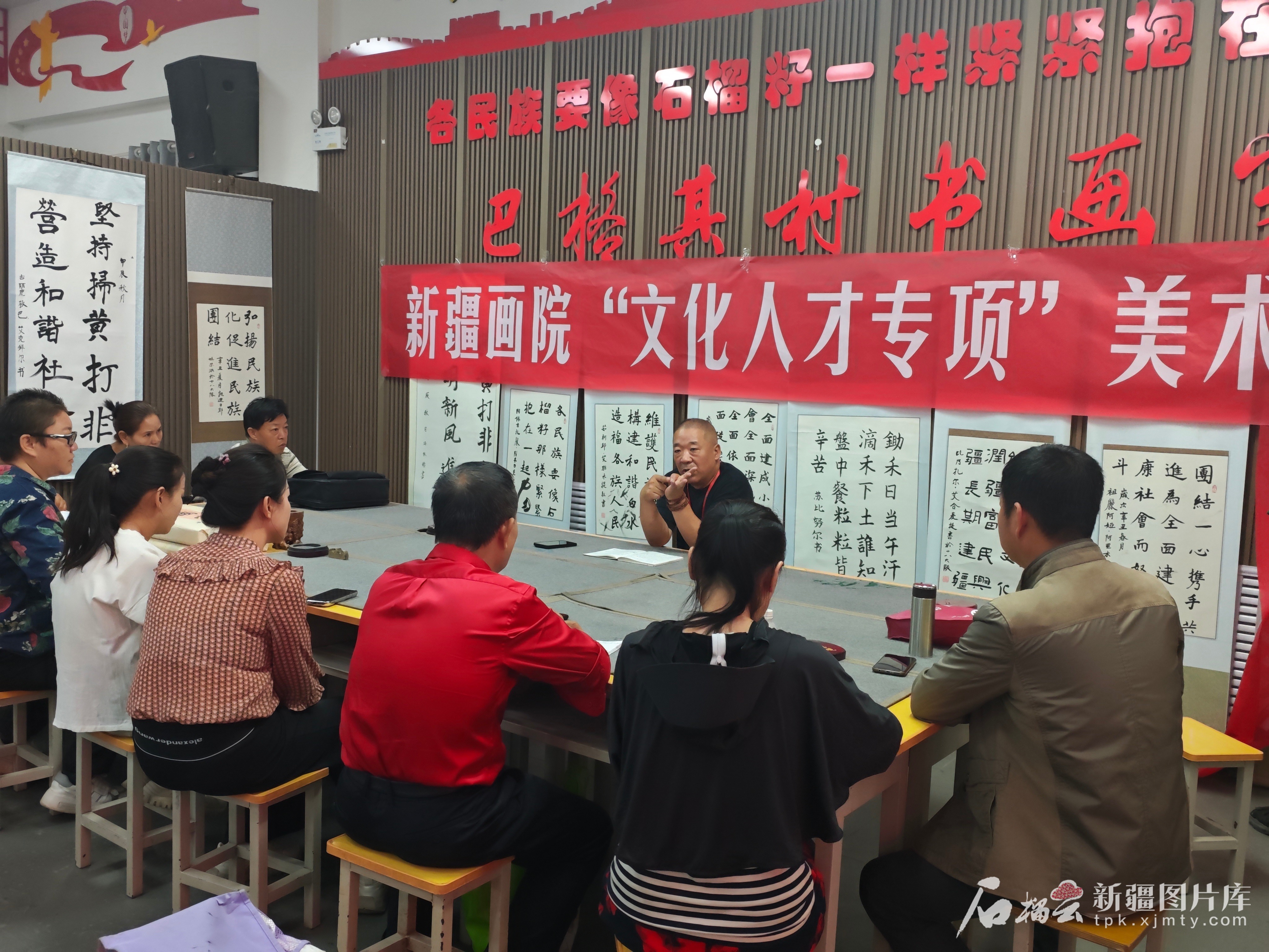 自治區(qū)美術(shù)書(shū)法“石榴籽”文藝小分隊(duì)在拜城縣開(kāi)展書(shū)畫(huà)培訓(xùn)活動(dòng)。紅梅攝