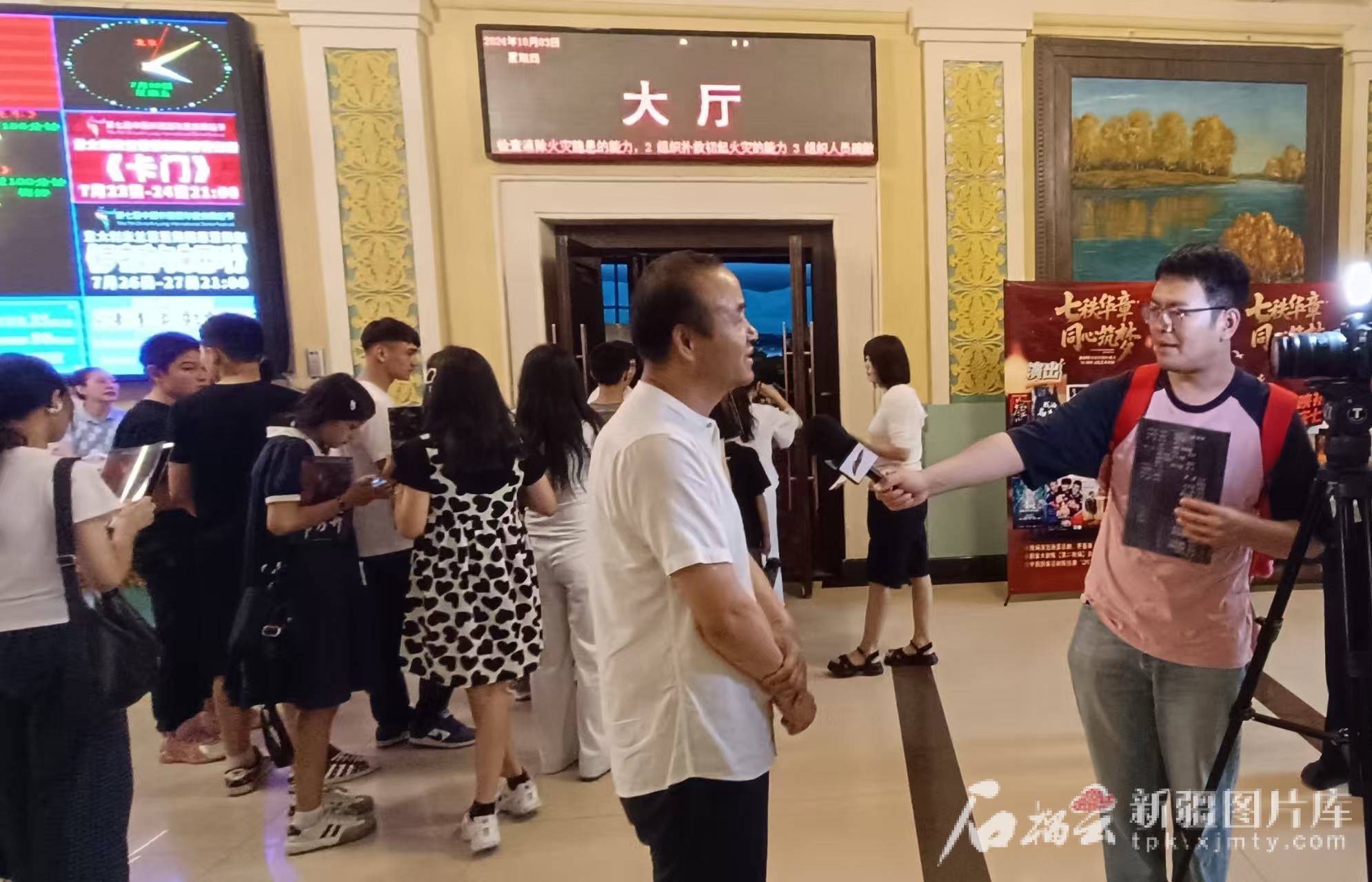 觀看話劇《我的布力開(kāi)》的觀眾接受采訪。天山網(wǎng)-新疆日?qǐng)?bào)記者 任江攝