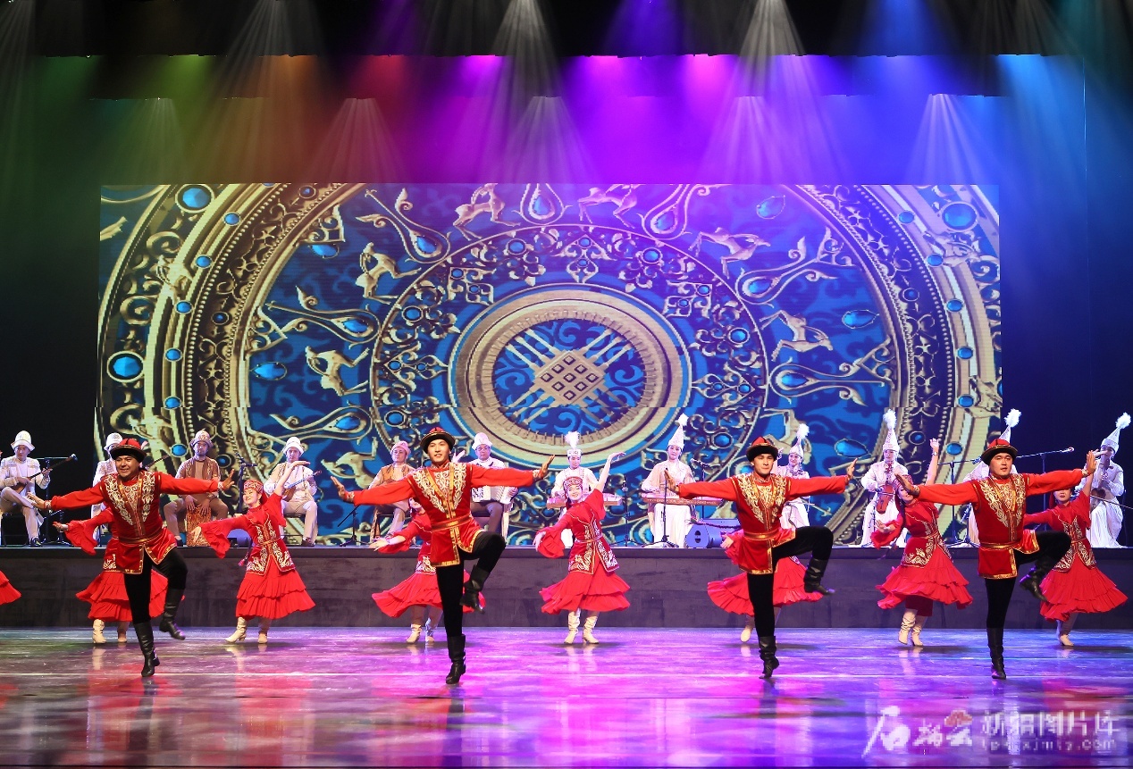 哈薩克斯坦國家闊爾庫特民族歌舞團(tuán)與“納茲”國家舞蹈劇院藝術(shù)家表演的舞蹈《艾樂黑薩》。 劉成剛 攝