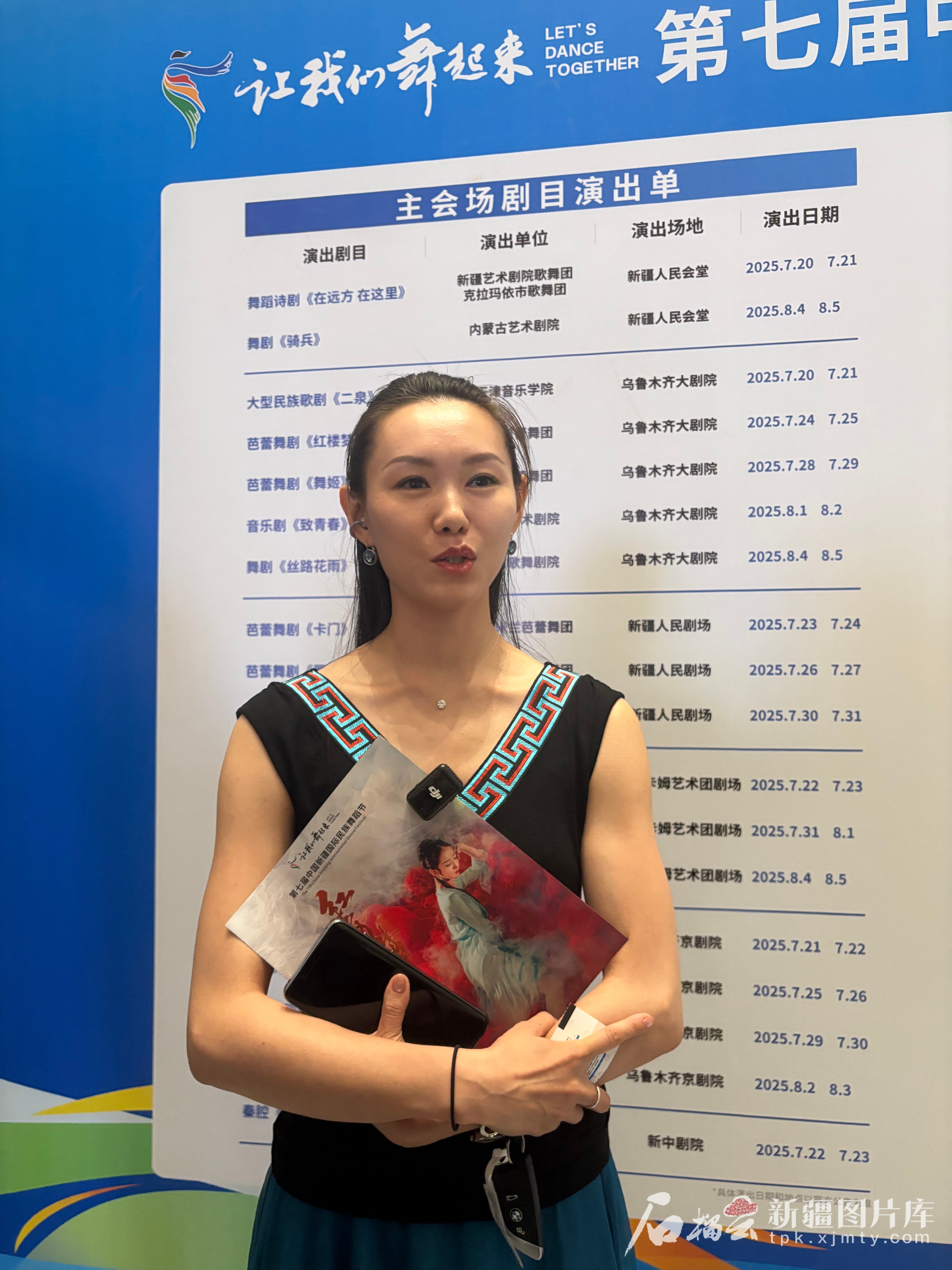 7月24日,中央芭蕾舞團芭蕾舞劇《紅樓夢》演出后,觀眾接受記者采訪。天山網(wǎng)-新疆日報記者 阿比拜攝