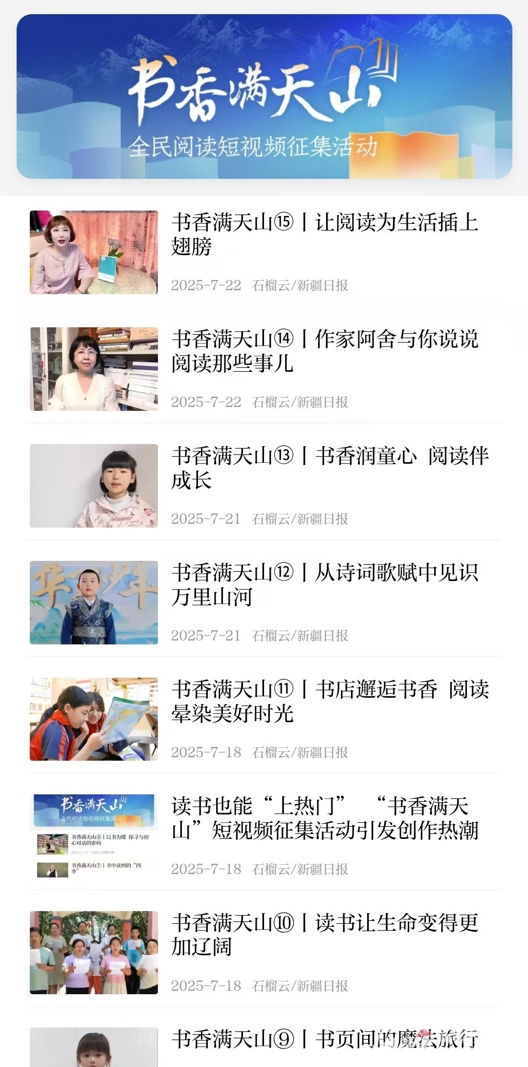 在石榴云平臺刊發(fā)專題“書香滿天山”,來自讀者的投稿視頻。
