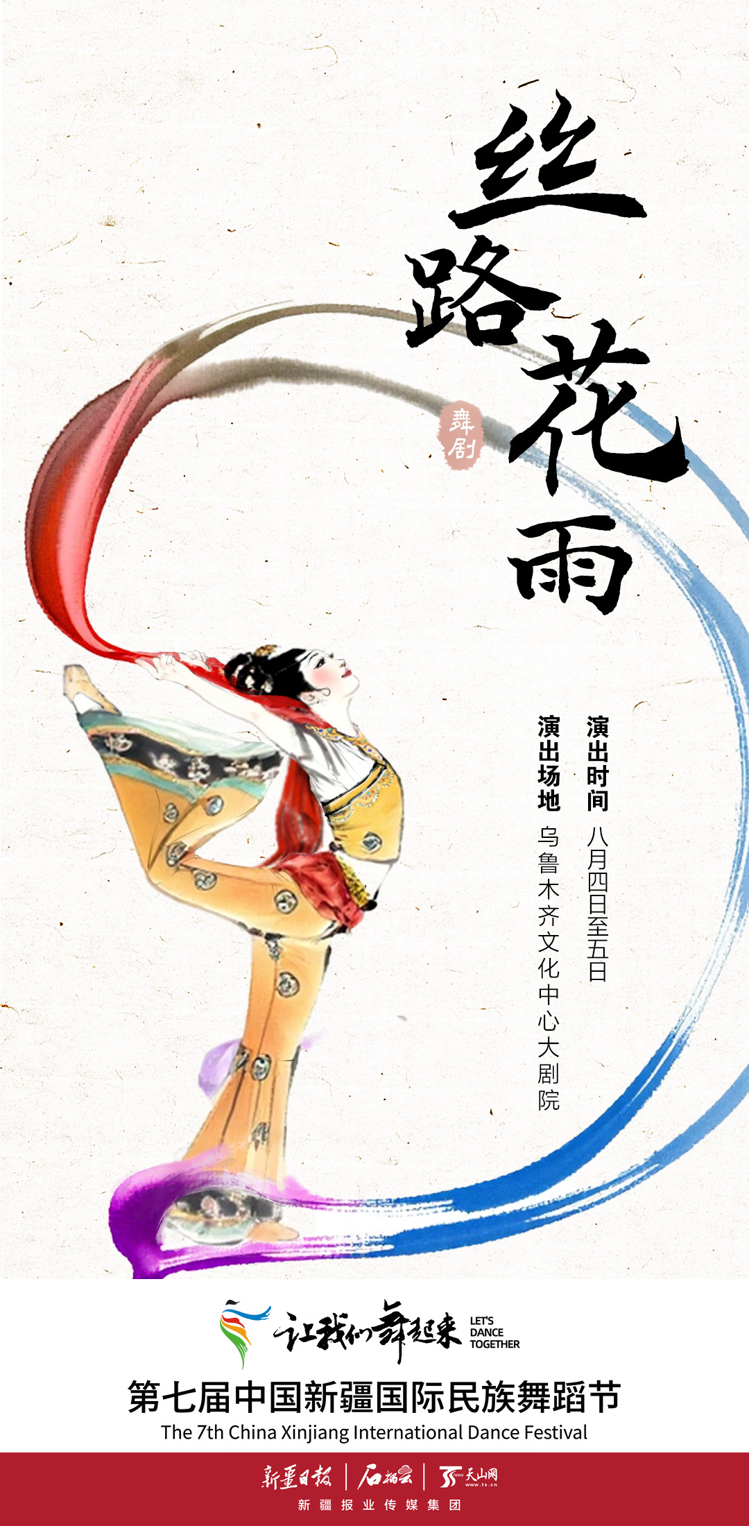 手繪海報(bào)丨第七屆中國新疆國際民族舞蹈節(jié)——舞劇《絲路花雨》