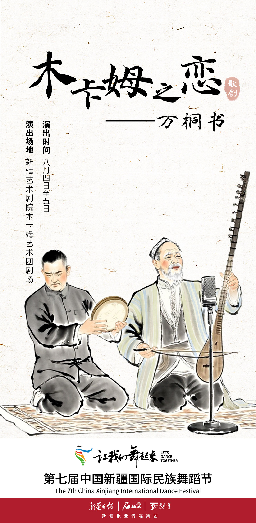 手繪海報丨第七屆中國新疆國際民族舞蹈節(jié)——歌劇《木卡姆戀歌——萬桐書》