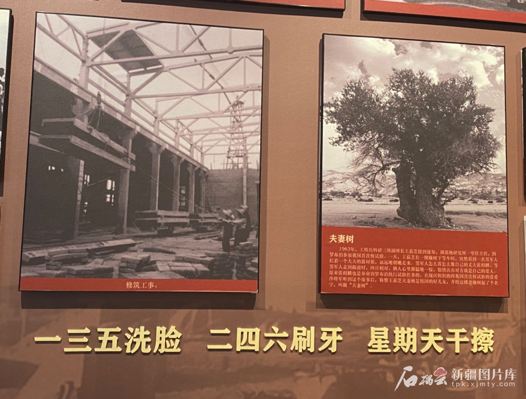 展廳中一幅黑白照片上的順口溜“一三五洗臉,二四六刷牙,星期天干擦……”,生動(dòng)描繪出當(dāng)年馬蘭人生活的極度艱苦。方圓數(shù)百公里人跡罕至,幾十公里見(jiàn)不到一棵樹(shù),泉水苦澀咸,吃水要去很遠(yuǎn)的孔雀河取,蔬菜等生活物資也要靠外部運(yùn)進(jìn)來(lái)。面對(duì)惡劣環(huán)境,馬蘭人自力更生:住地窩子、點(diǎn)馬燈、開(kāi)荒種地;糧食緊張時(shí),用醬油兌水充饑,甚至采集榆樹(shù)皮果腹。為省水省時(shí),女兵們紛紛剪去長(zhǎng)發(fā)。張愛(ài)萍將軍目睹她們?nèi)纭盎咎m”般為國(guó)奮戰(zhàn),深受感動(dòng),特將其居住地命名為“木蘭村”。