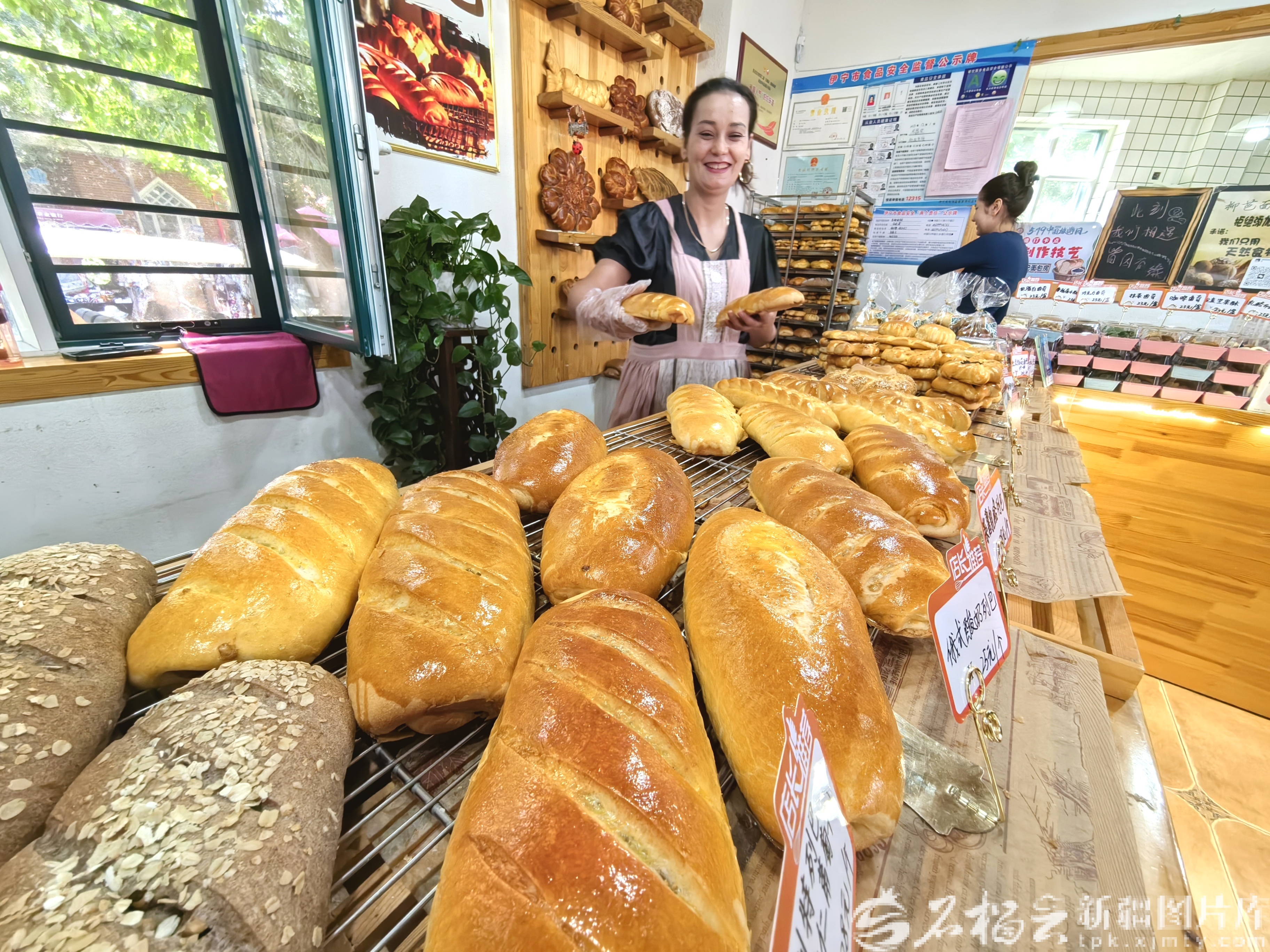 9月8日,在伊寧市六星街一商家正在擺放剛出爐的俄羅斯列巴。