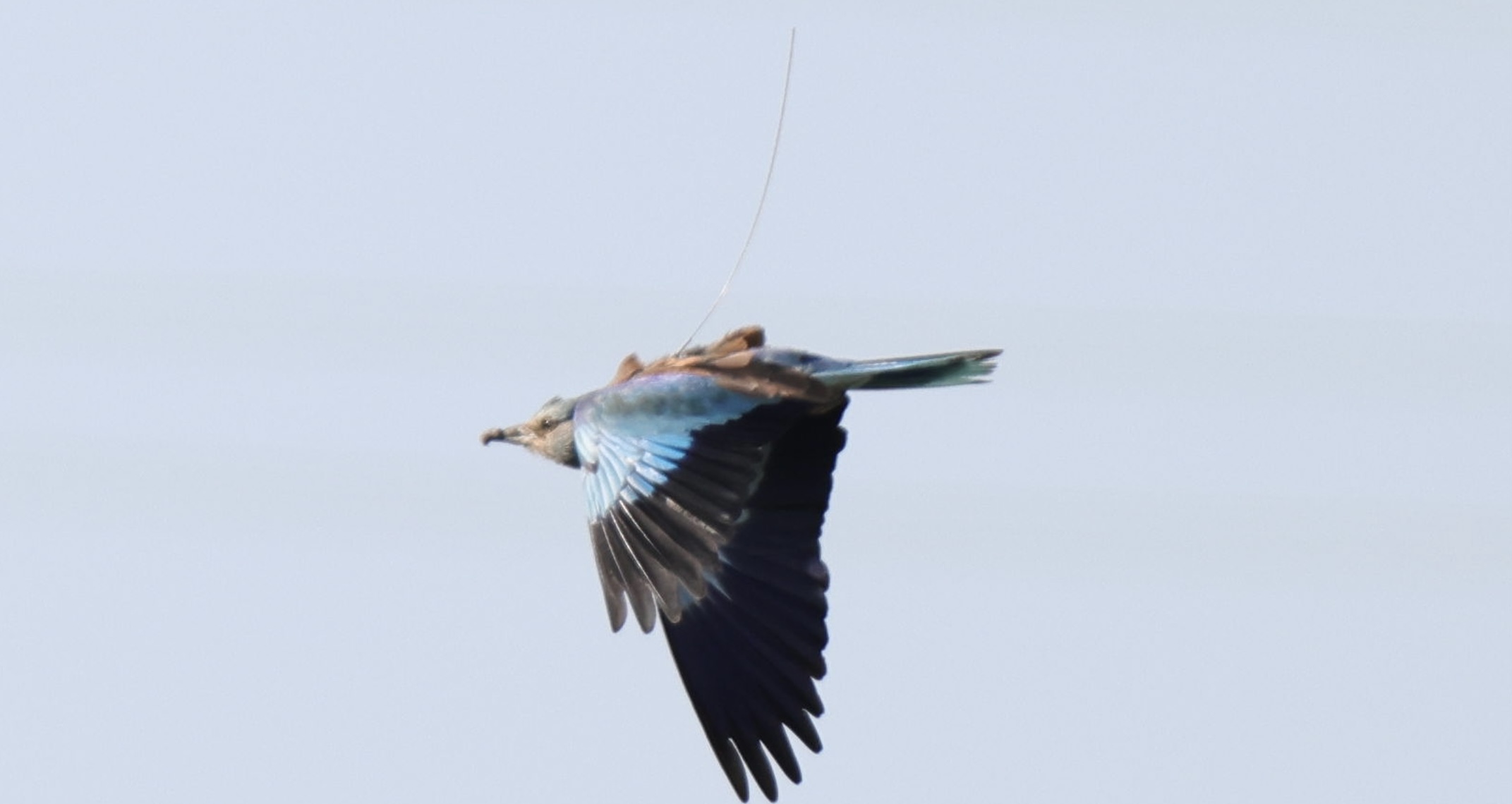 近年來,藍胸佛法僧在歐洲的種群數(shù)量持續(xù)下降,但其遷徙路徑和棲息環(huán)境一直不夠明確。為探究這些謎題并推進跨國保護,今年春天,南非科研人員為7只藍胸佛法僧安裝了衛(wèi)星跟蹤器。其中,一只編號為Rory—284727的雄性成鳥最終飛抵新疆北部。作為合作團隊成員,馬鳴負責(zé)該個體在新疆境內(nèi)的監(jiān)測工作。