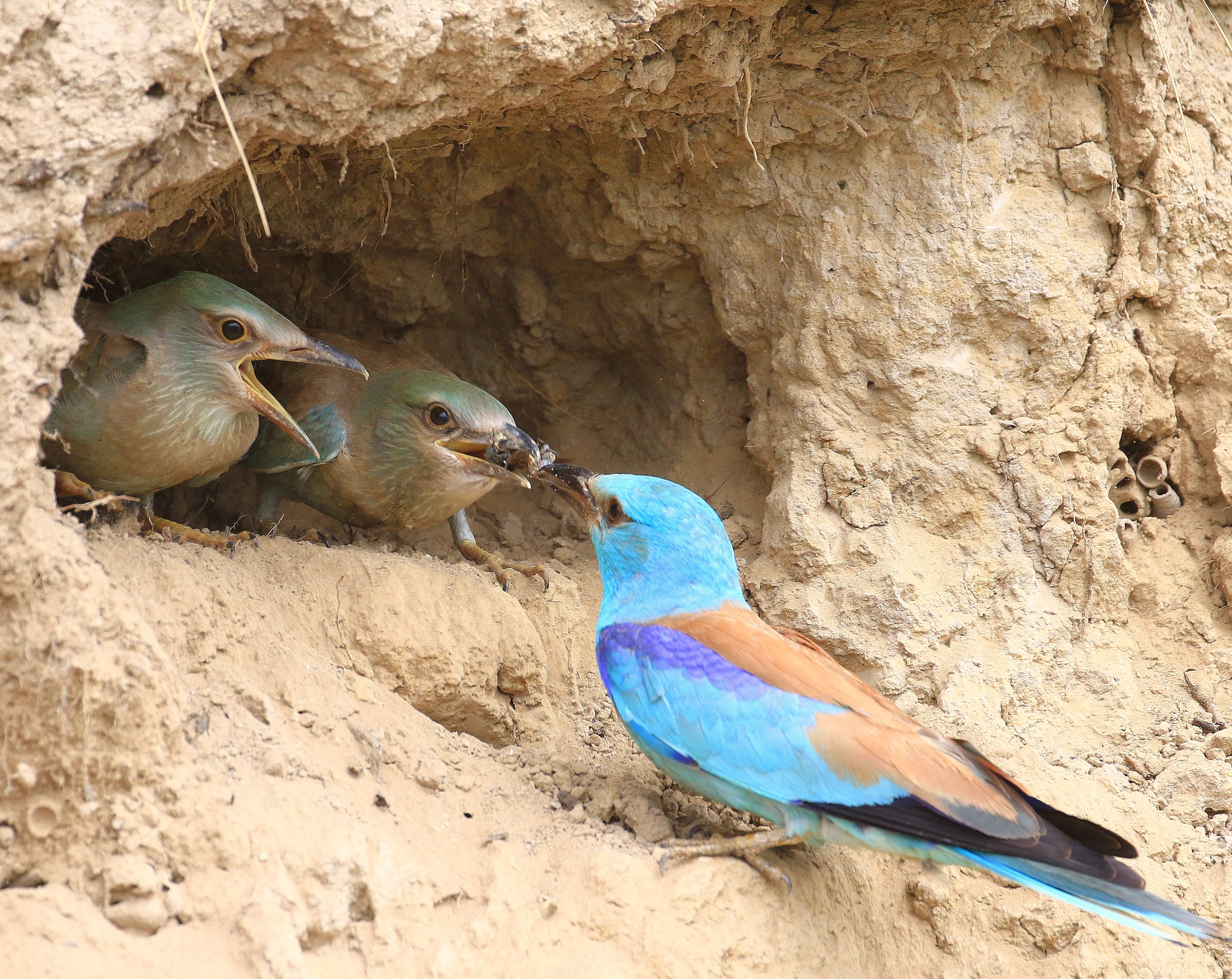 新疆鳥友7月中旬在新源縣拍攝到藍胸佛法僧育雛畫面。圖片由受訪者提供