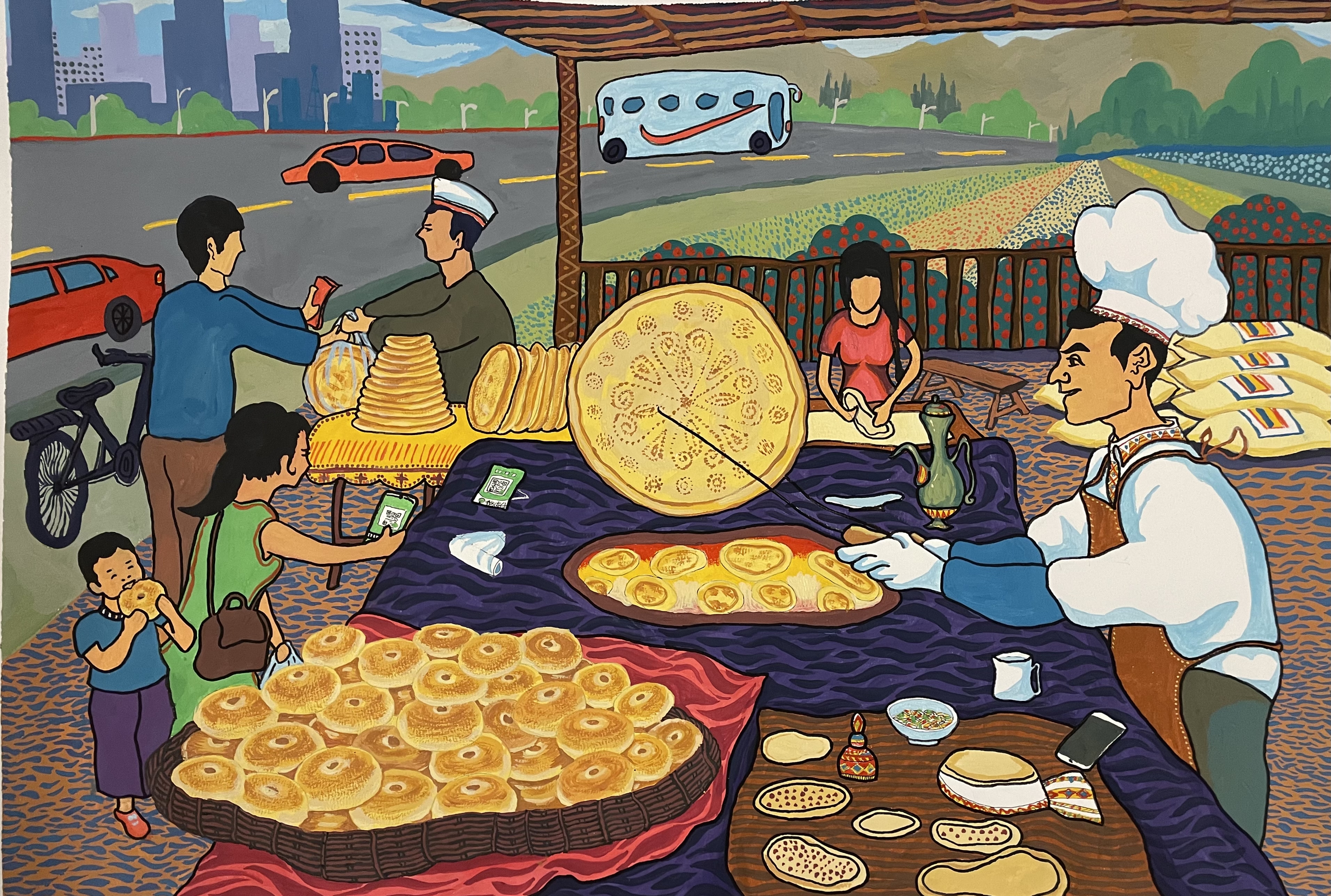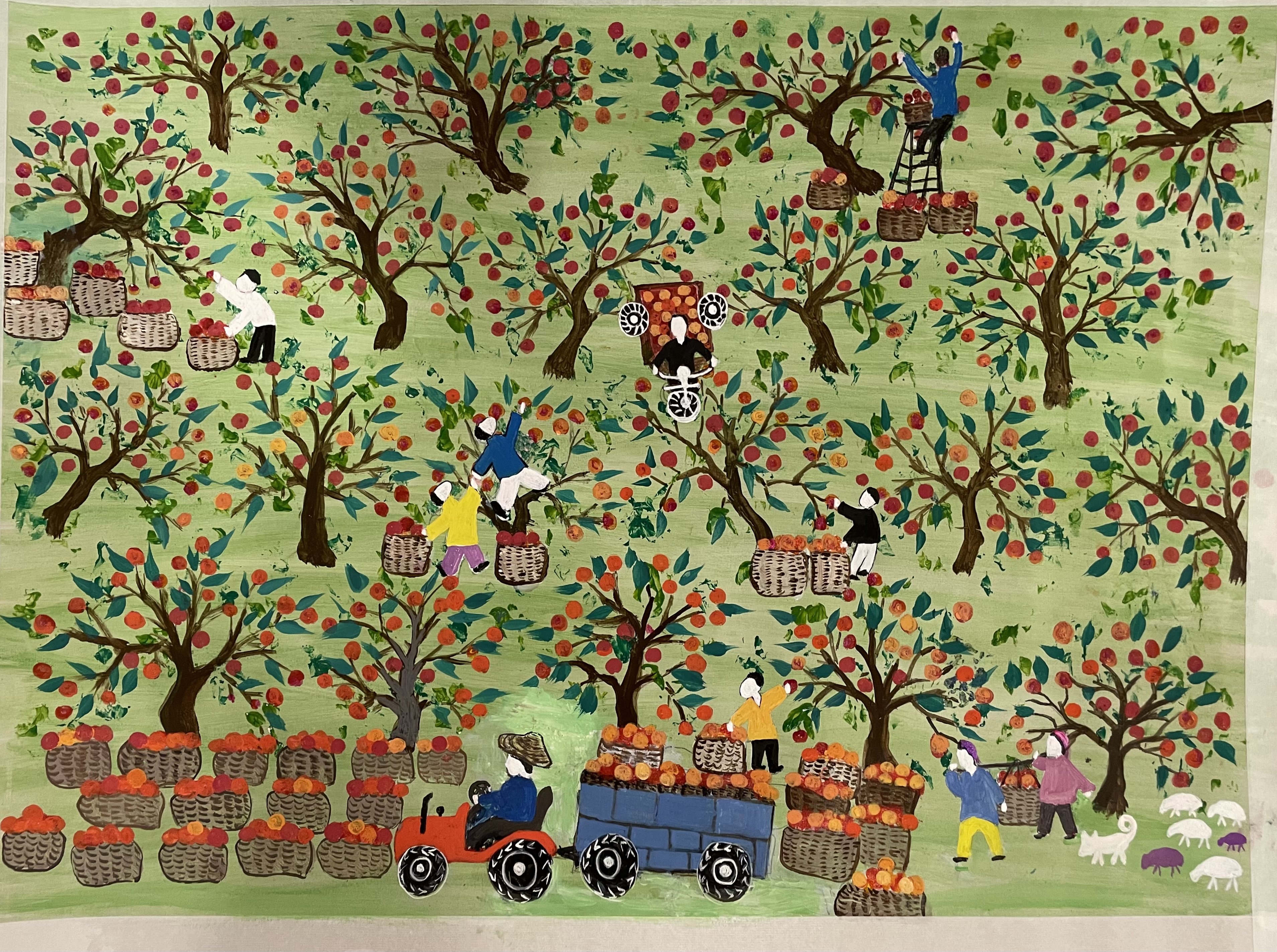 讓我們一同走進(jìn)這些色彩濃烈、質(zhì)樸鮮活的農(nóng)民畫作。每一筆都浸潤著創(chuàng)作者對鄉(xiāng)土生活的深情,每一幅都定格了新疆農(nóng)牧民的真實喜悅與奮斗足跡。這些作品以最生動的視覺語言,呈現(xiàn)了鄉(xiāng)村振興戰(zhàn)略下新疆大地的豐碩成果與蓬勃生機。