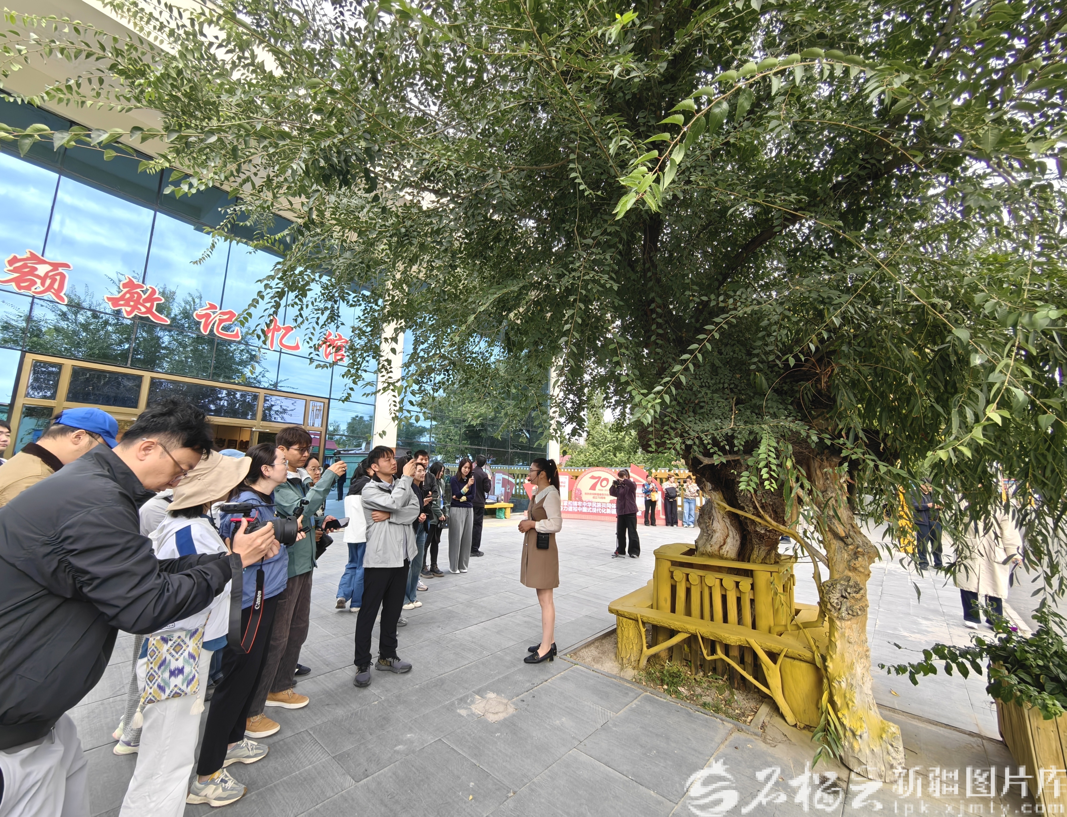 9月13日,采訪團在額敏縣記憶館前了解榆柳巷名字的來歷。