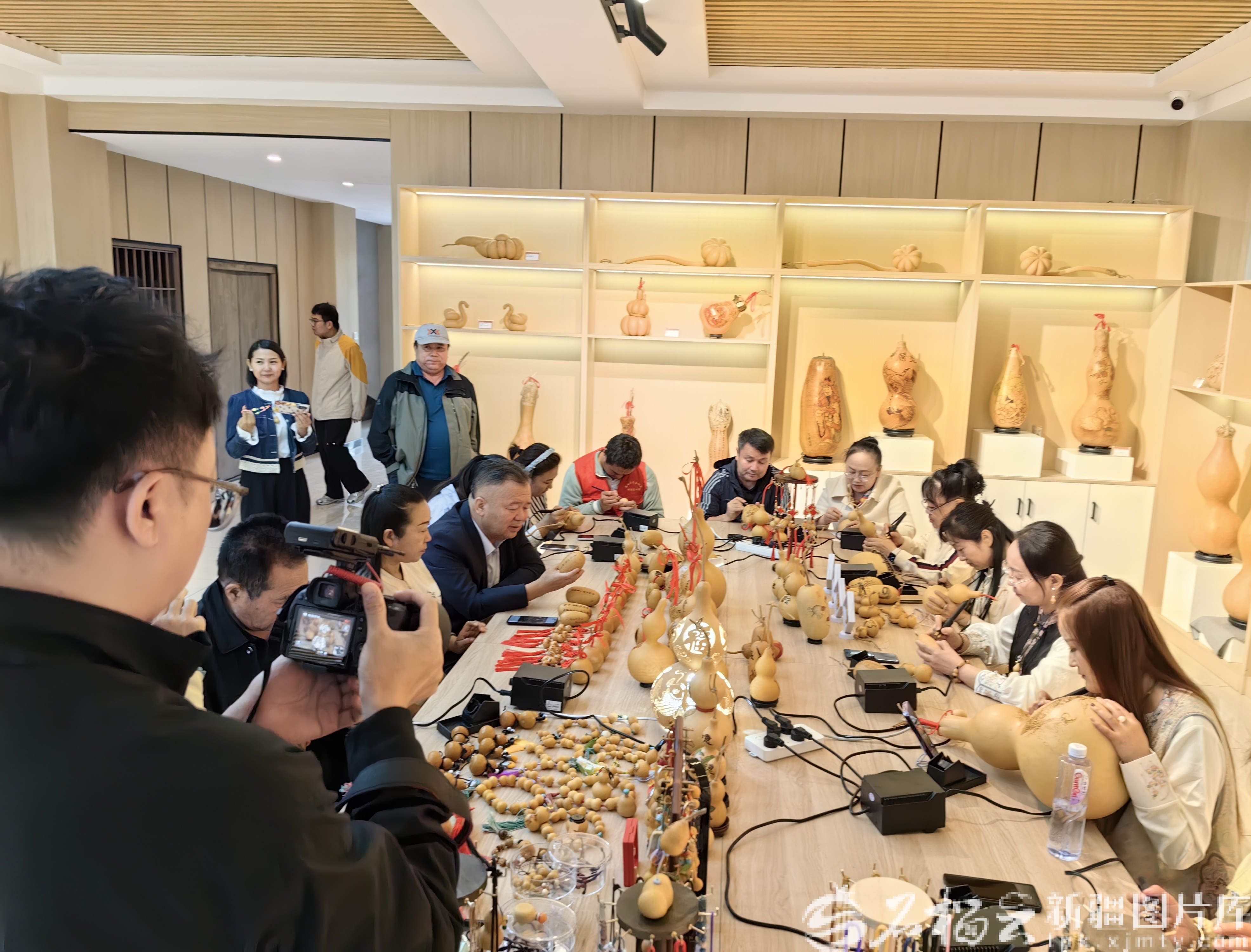 9月13日,采訪團成員在榆柳巷額敏縣記憶館葫蘆烙畫非遺技藝研學基地拍攝。