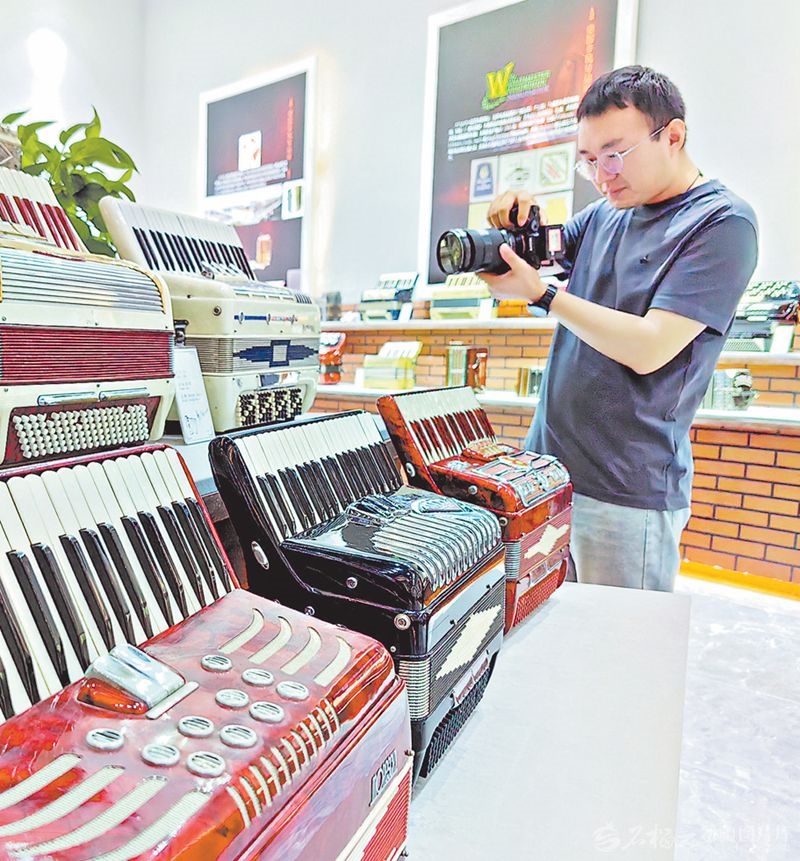 9月13日,參觀者在塔城手風(fēng)琴文化展館拍攝。該館以手風(fēng)琴及手風(fēng)琴文化為主題,展示了來自10多個國家的1100余架手風(fēng)琴。天山網(wǎng)-新疆日報記者 李雄心攝