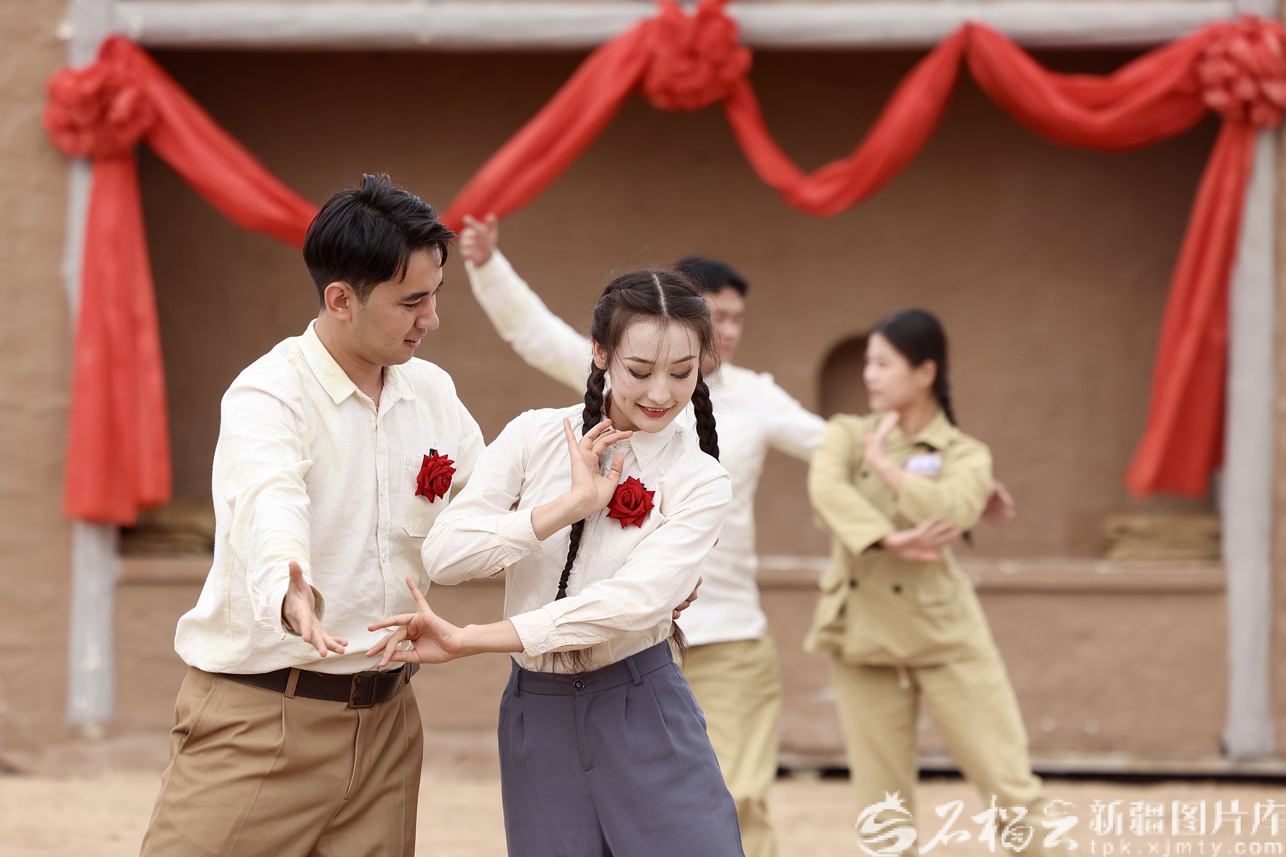 9月12日,軍墾地窩子遺址紀(jì)念園演員在表演情景劇《地窩子里的婚禮》。