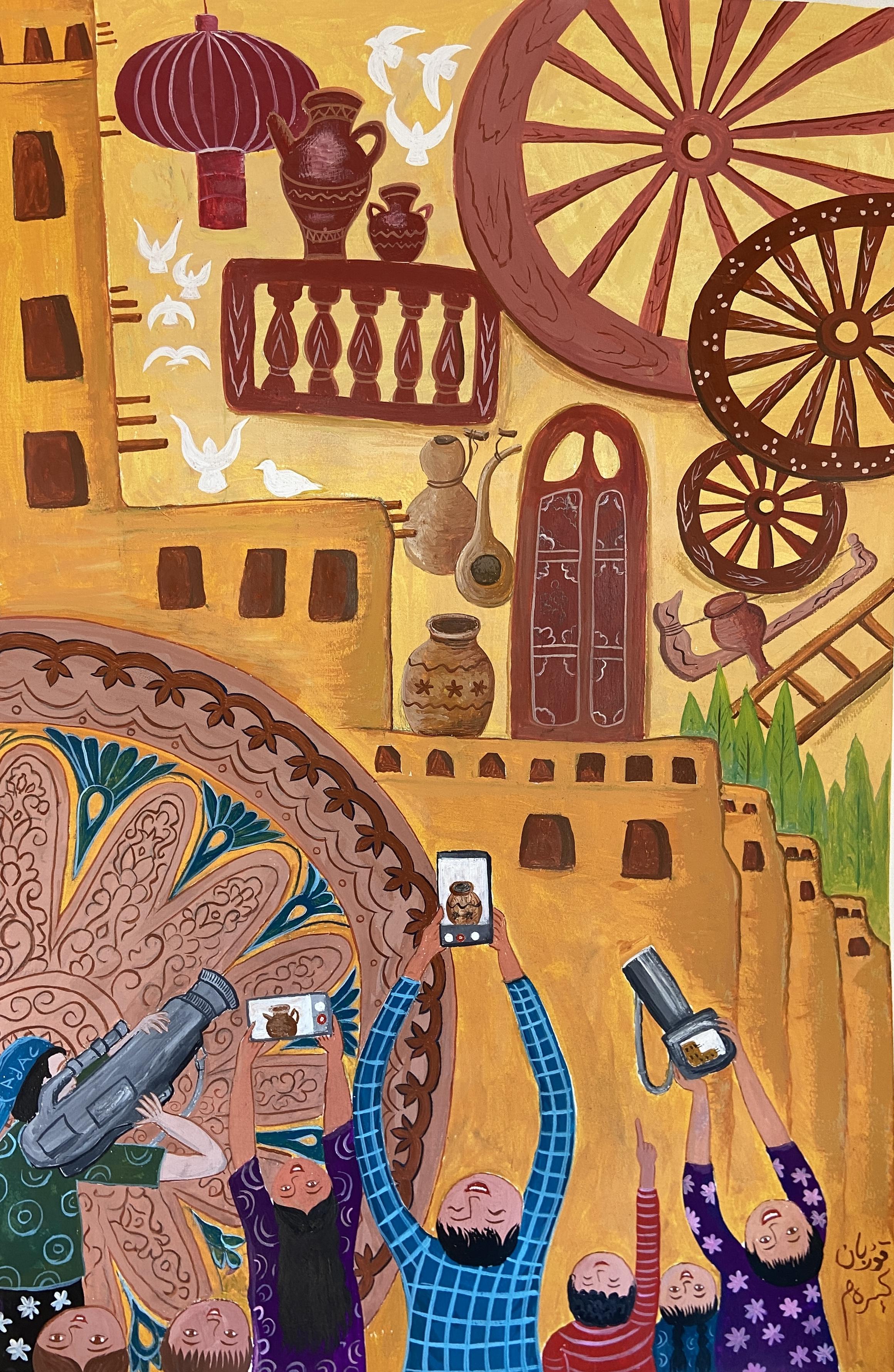 讓我們一同走進這些色彩濃烈、質(zhì)樸鮮活的農(nóng)民畫作。每一筆都浸潤著創(chuàng)作者對鄉(xiāng)土生活的深情,每一幅都定格了新疆農(nóng)牧民的真實喜悅與奮斗足跡。這些作品以最生動的視覺語言,呈現(xiàn)了鄉(xiāng)村振興戰(zhàn)略下新疆大地的豐碩成果與蓬勃生機。